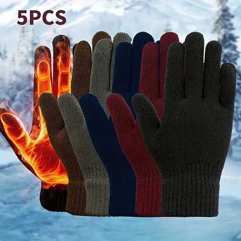 纯色针织手套男女士秋冬季保暖加绒弹力毛线分指学生骑行防寒手套