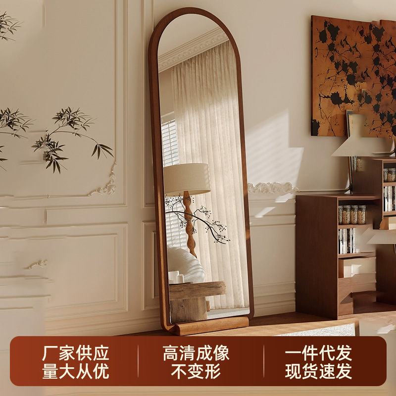 フランス式全身鏡床置き鏡移動可能実木ベース着衣鏡女子寝室試着鏡アーチ型全身鏡