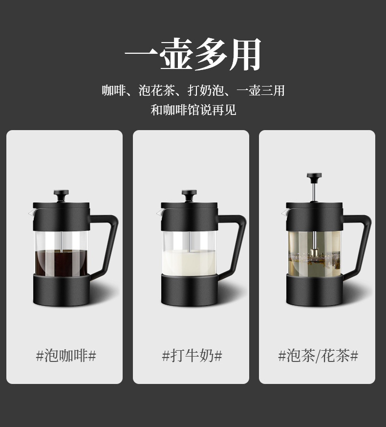 高硼硅玻璃法压壶冲泡咖啡滤压壶套装家用打泡冲茶器摁压式过滤杯