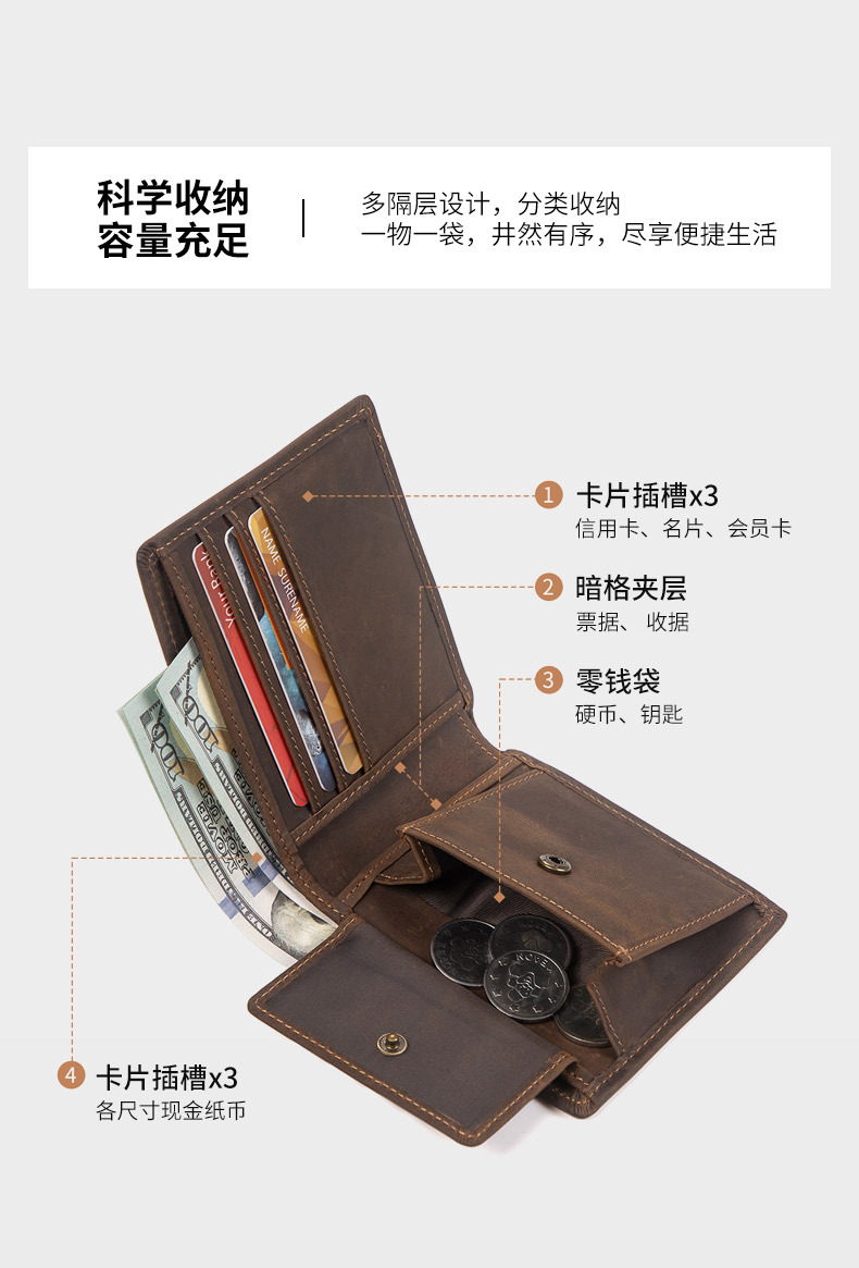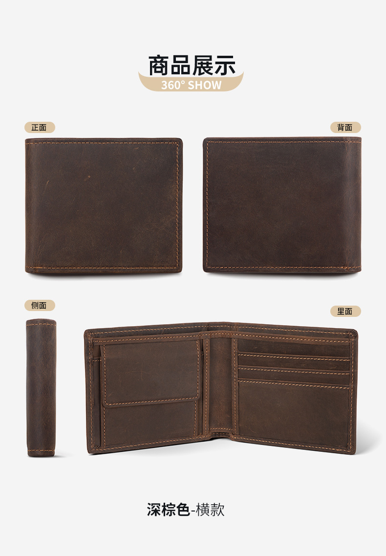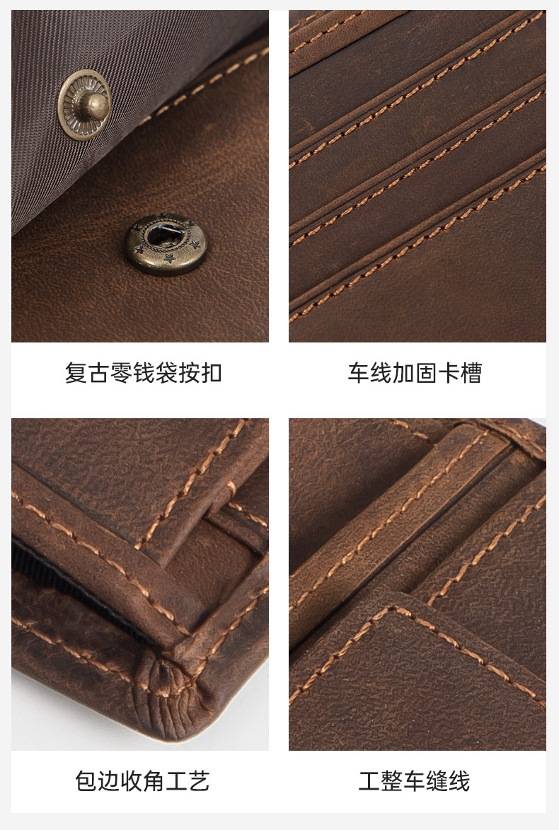 佳美达クレイジーホースレザー財布 本革ショートウォレット メンズ RFIDクロスボーダー卸売 縫製