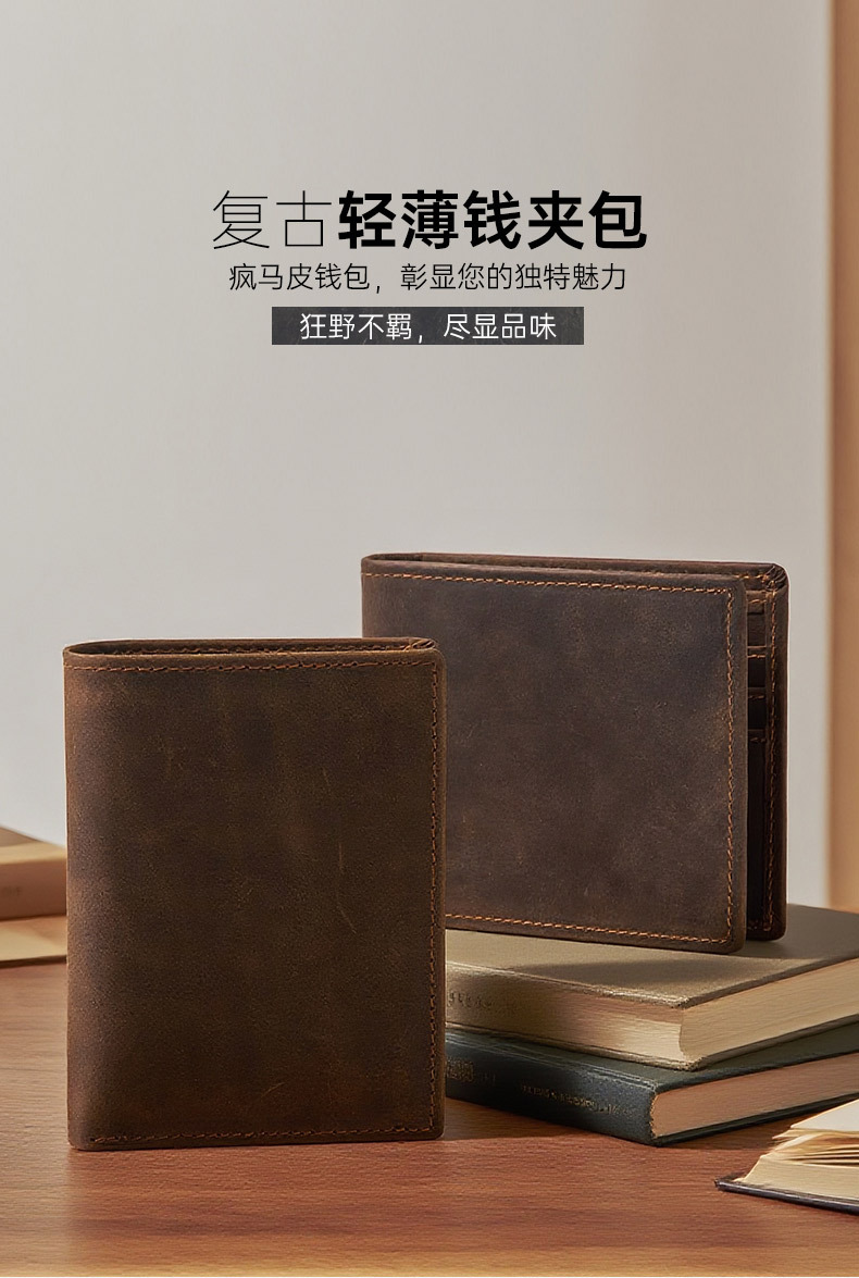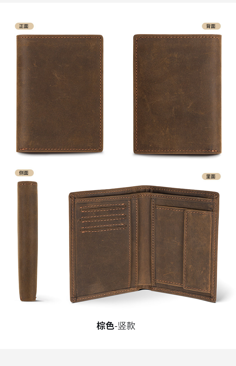佳美達復古牛皮財布男工場卸売り狂馬皮短金クリップ多卡位財布クリップ