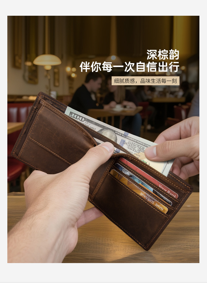 新款疯马皮钱包男士复古耐用真皮RFID钱包欧美热卖钱包源头厂家