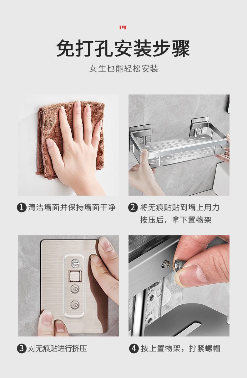免打孔卫生间置物架浴室架子厕所洗手洗澡间洗漱台壁挂墙上收纳架