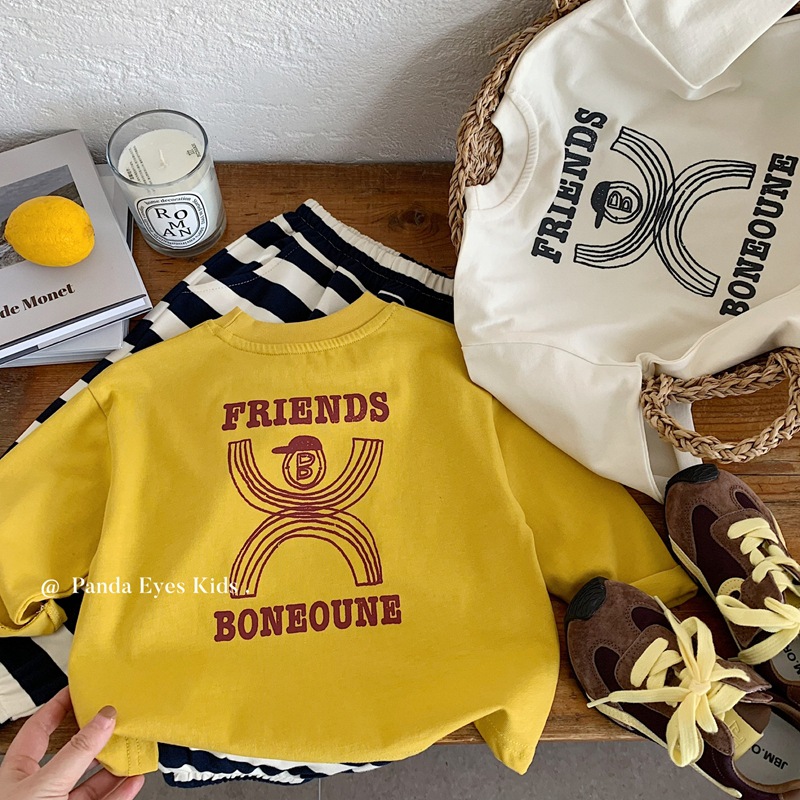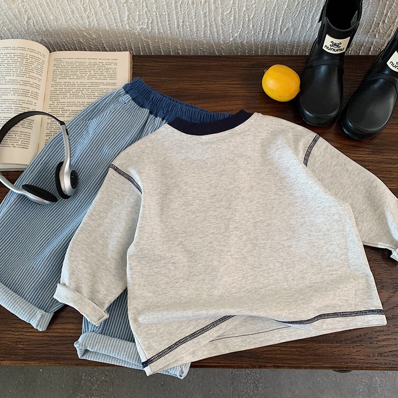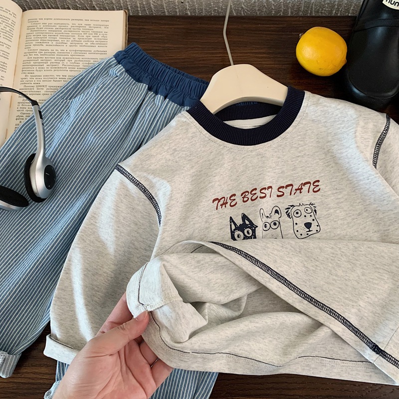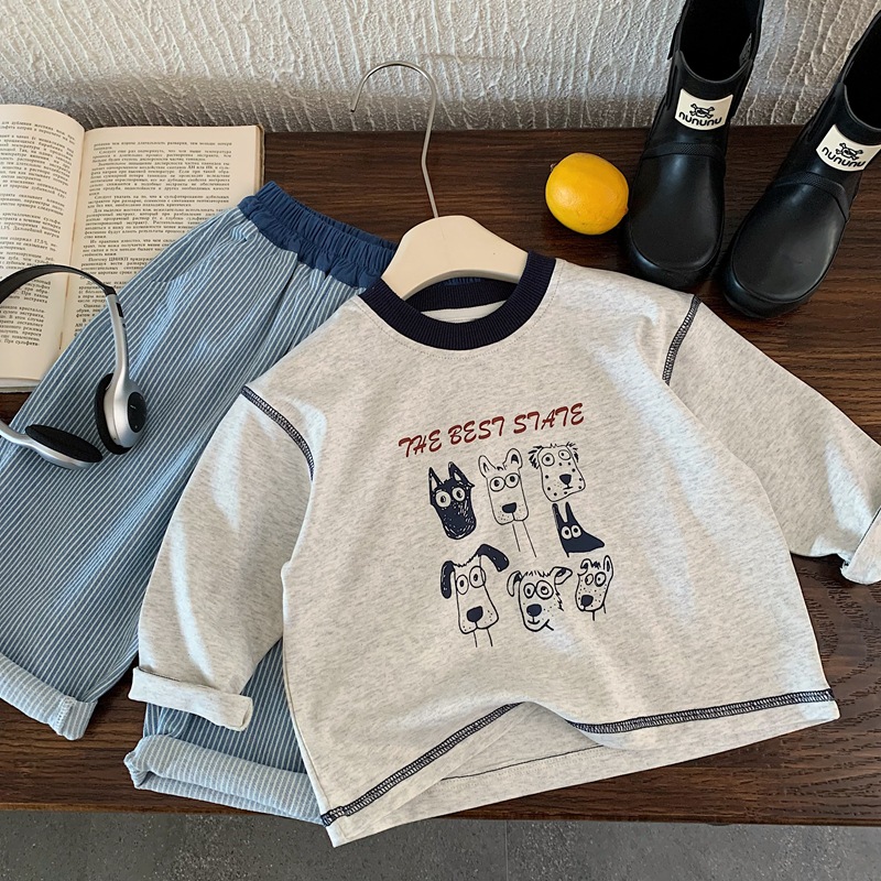 男童长袖T恤2025春秋装新款中小童明线卫衣宽松字母儿童打底衫薄t