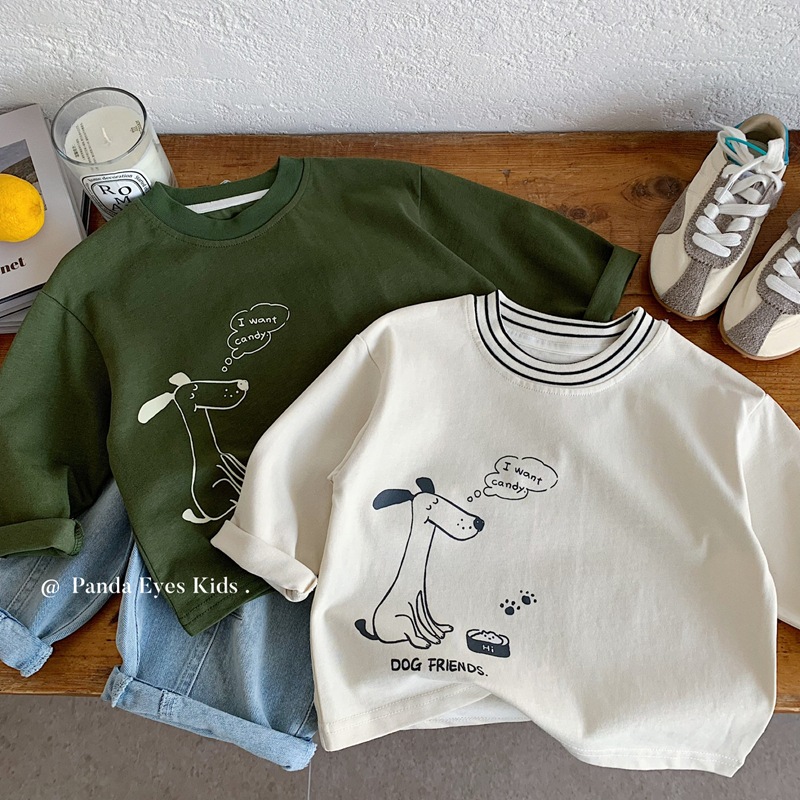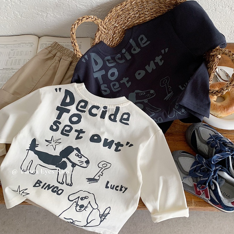 波拉bora韩国童装男童T恤长袖2025秋装儿童宽松上衣女童白色洋气