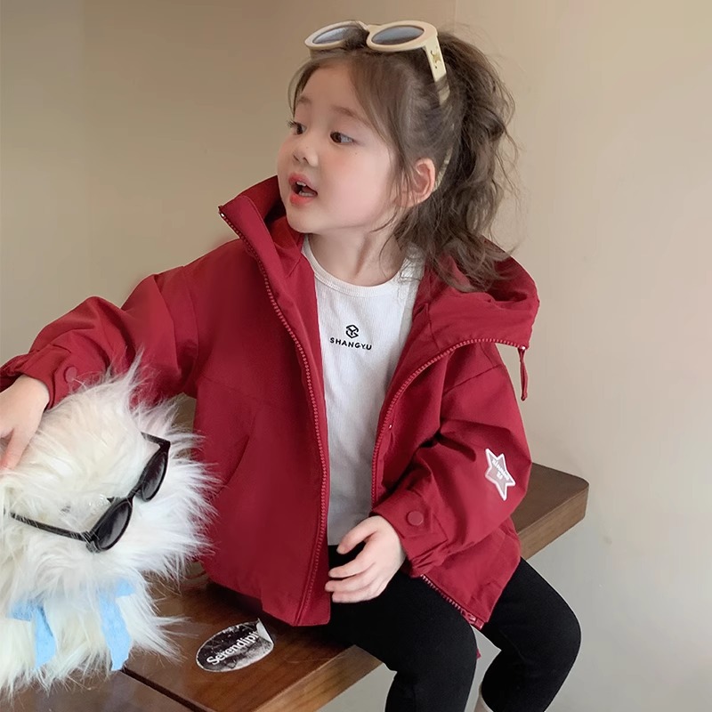 女童外套春秋款2025新款洋气女孩宝宝秋季连帽上衣儿童秋装冲锋衣