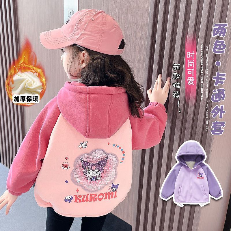 女童秋冬加绒外套韩版2025新款小童连帽衣服女宝宝加厚保暖上衣潮