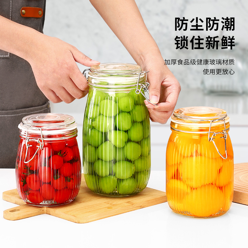 家庭用ガラス貯蔵缶食品密封缶防湿バヨネット缶ガラス滑り止め缶漬けキムチかめ空瓶