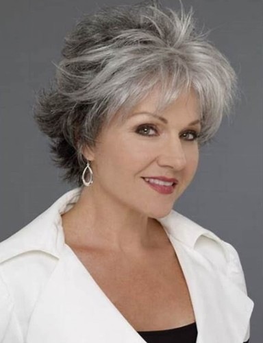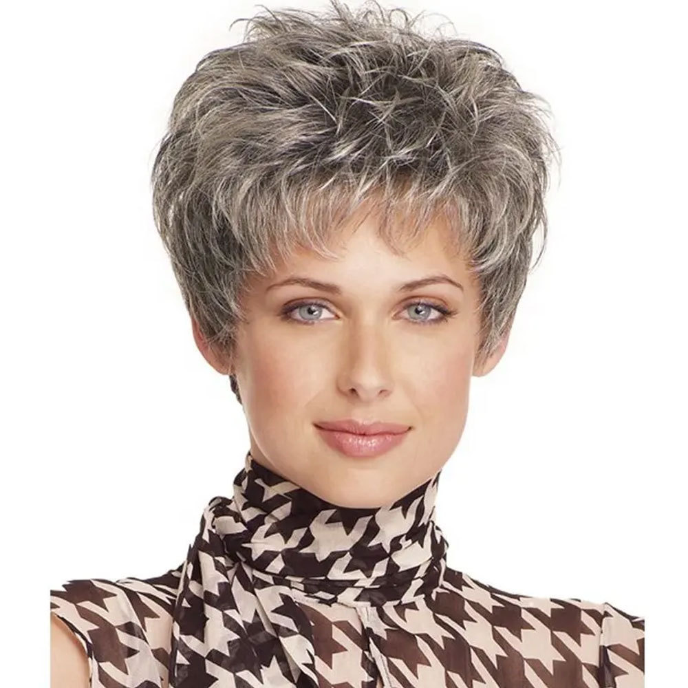 女士假发 中老年款合成假发短卷发奶奶灰银灰短发欧美假发套适合