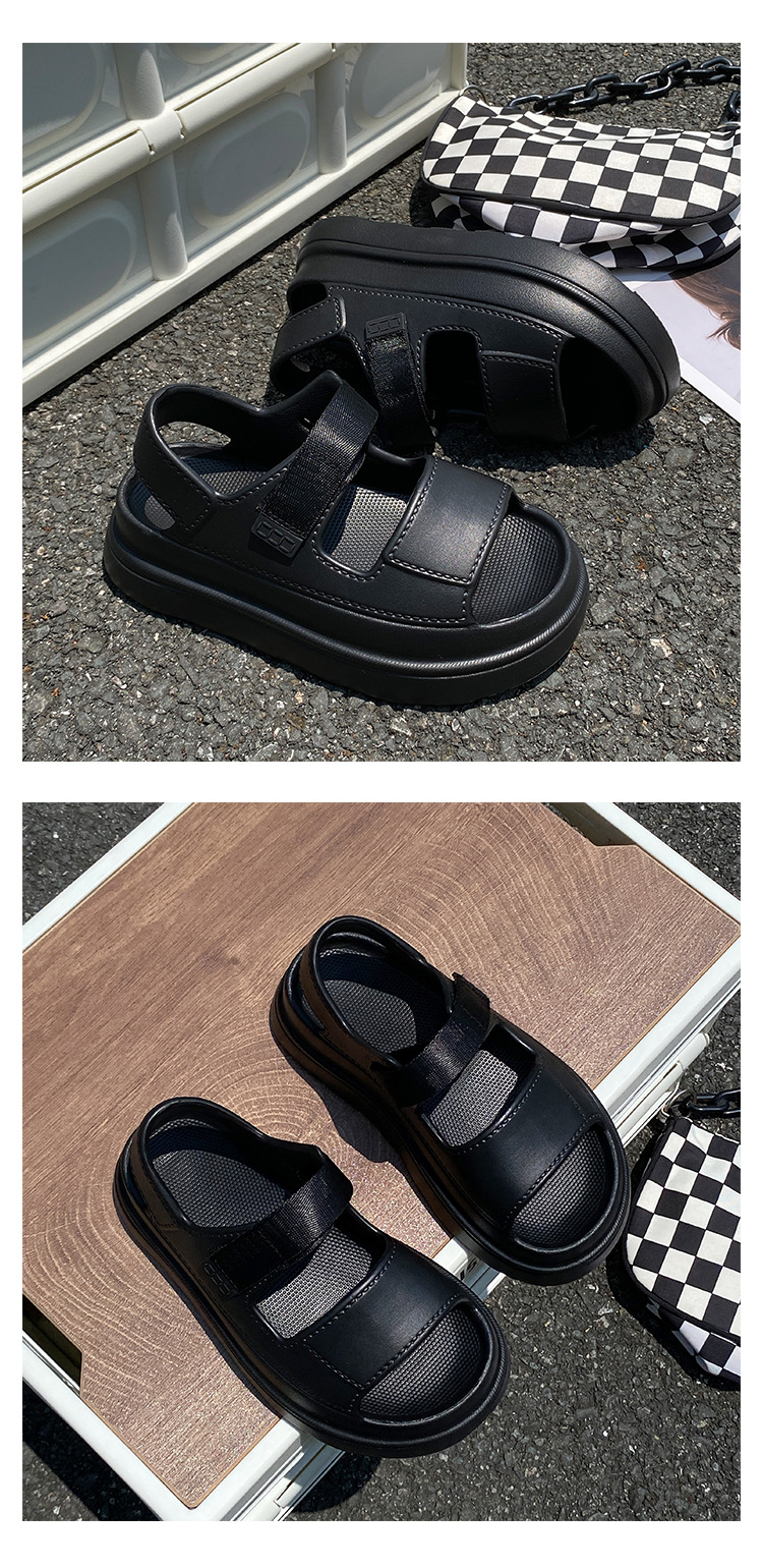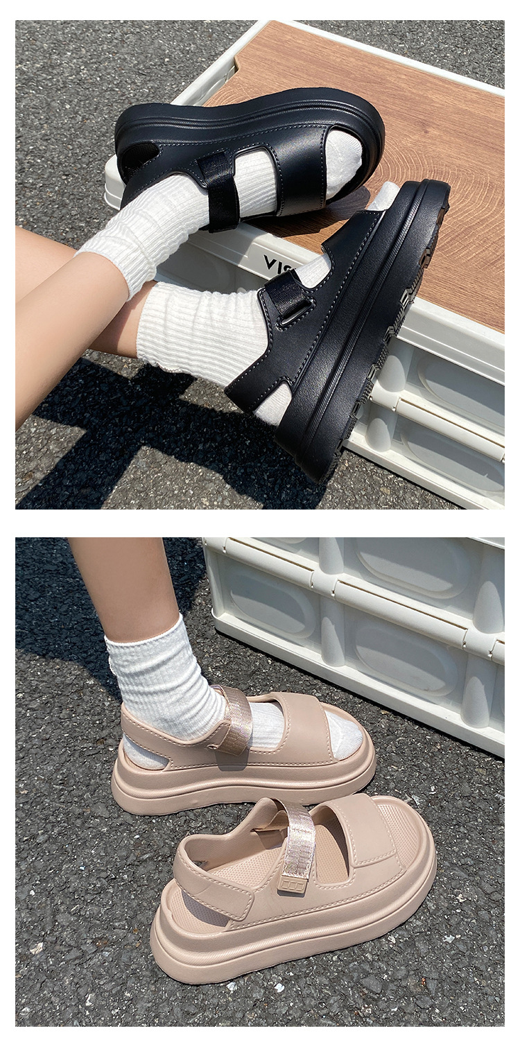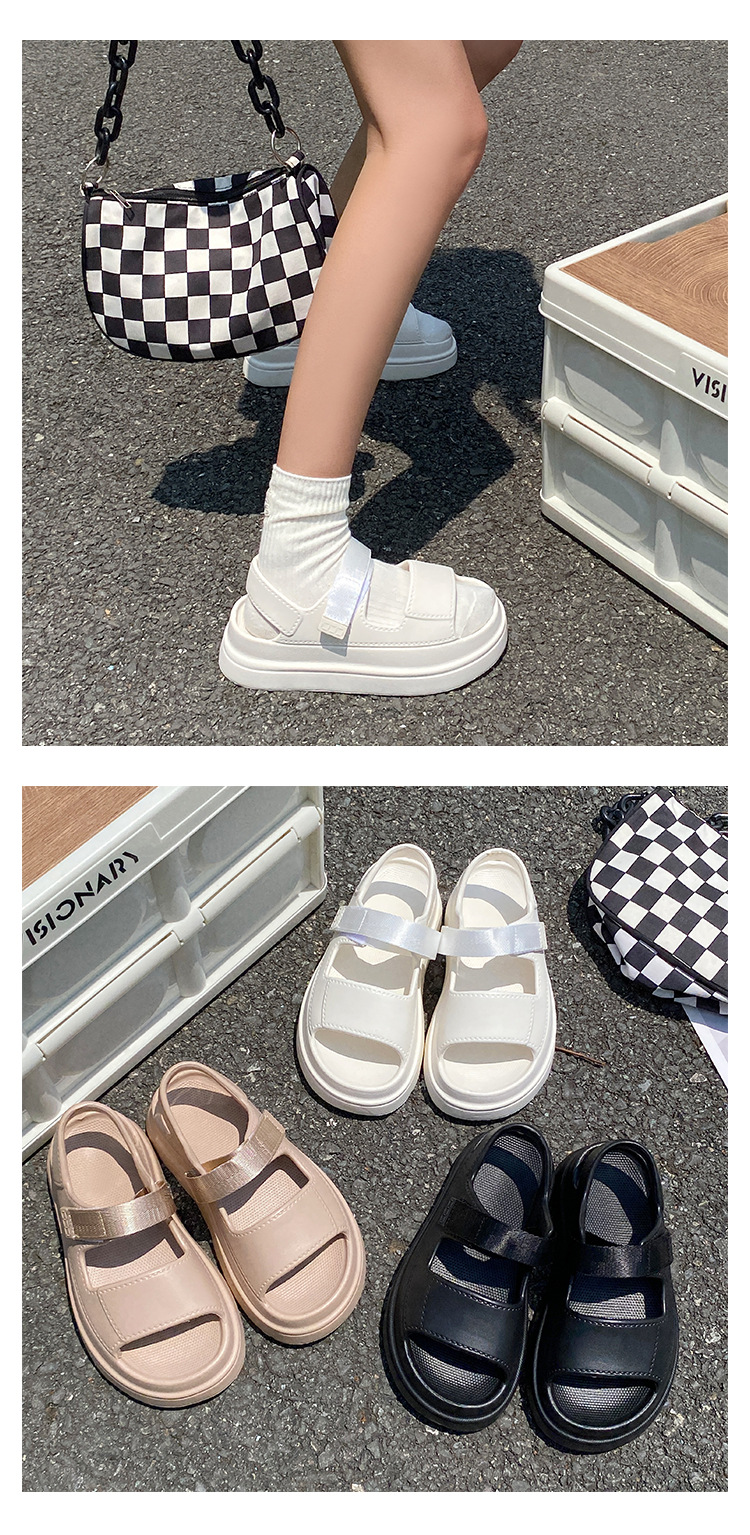 跨境批发厚底时尚百搭户外沙滩凉鞋女小个子增高魔术贴可调节凉鞋