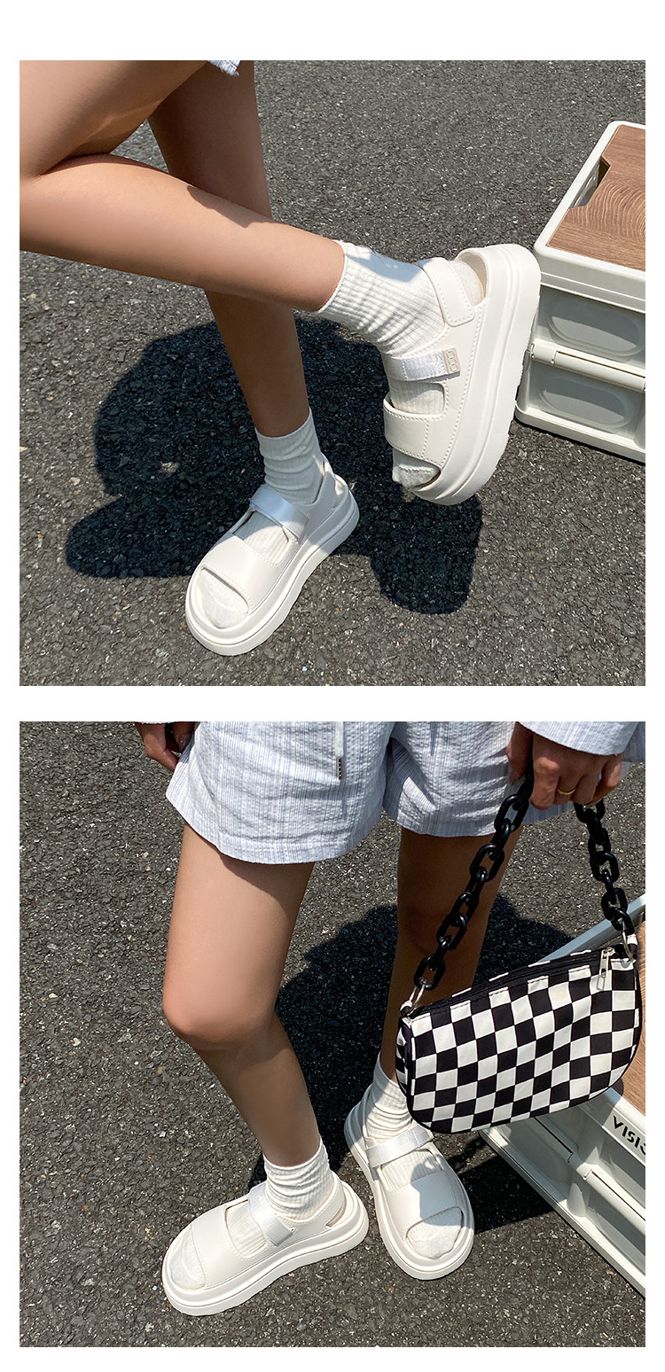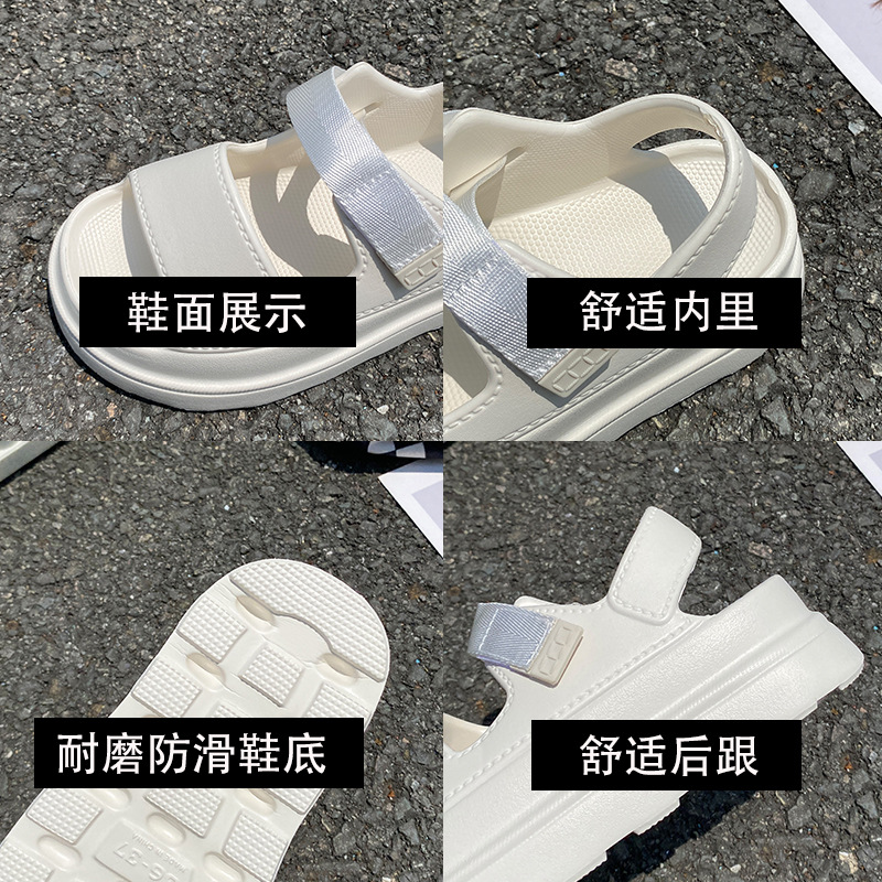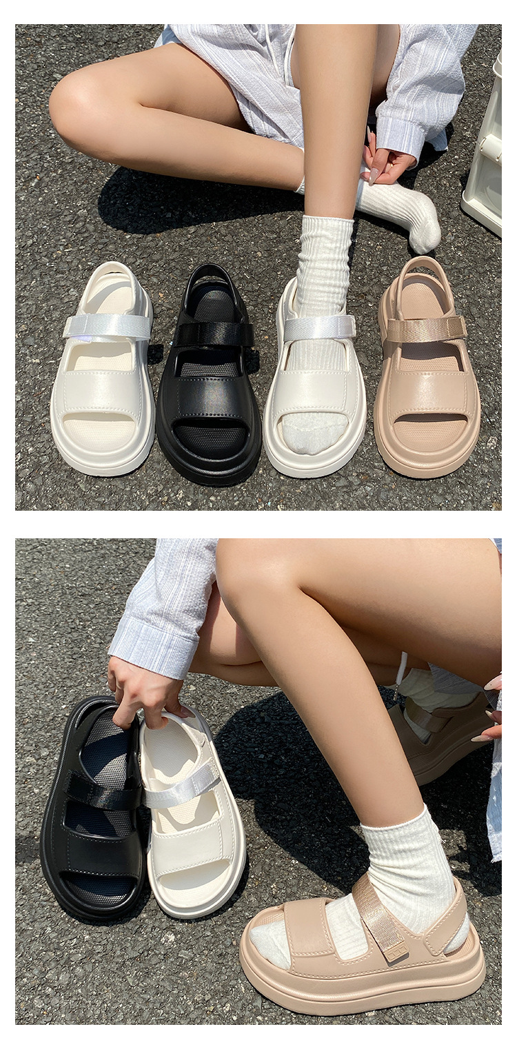 跨境批发厚底时尚百搭户外沙滩凉鞋女小个子增高魔术贴可调节凉鞋