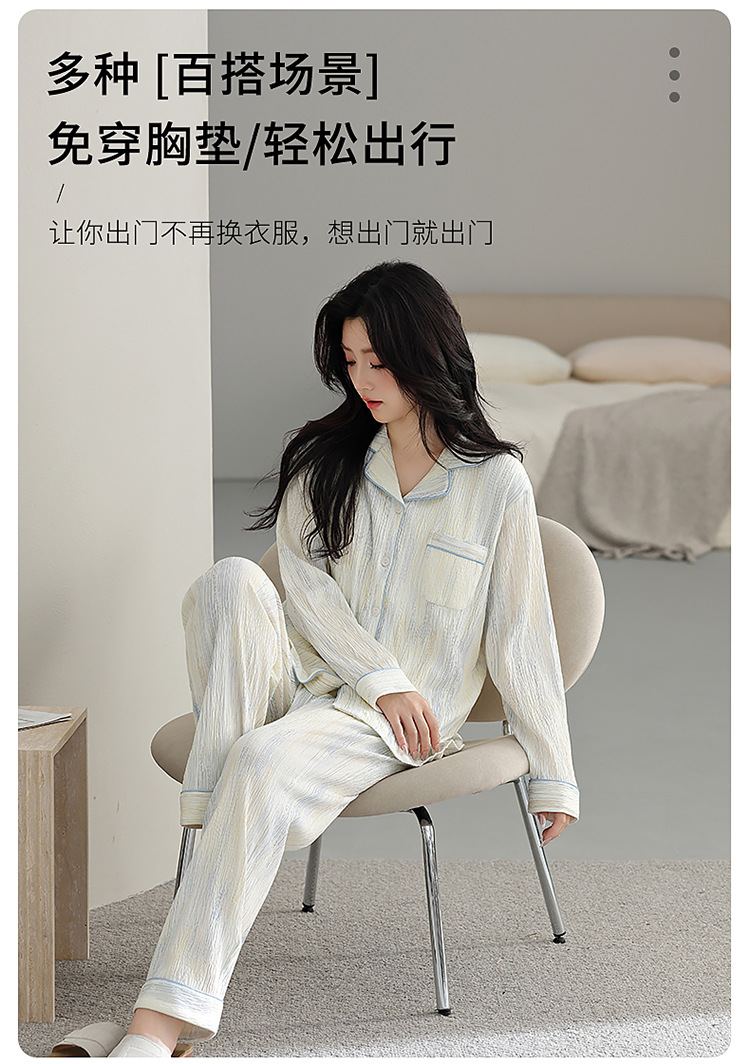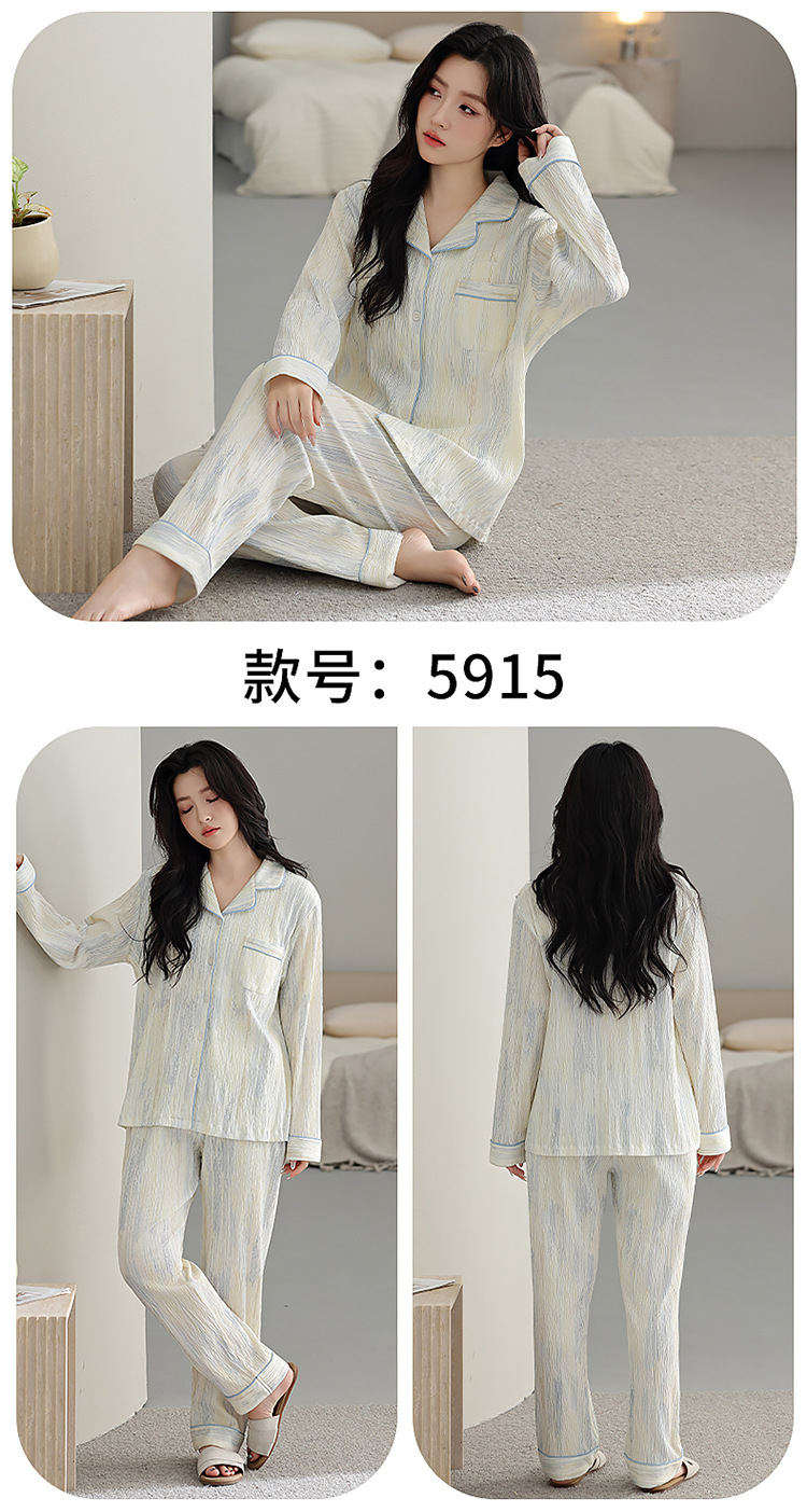 睡衣女春秋季新款甜美简约纯棉翻领韩版宽松可外穿长袖家居服套装