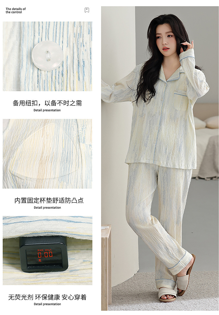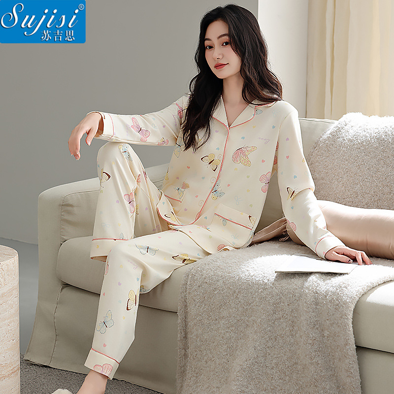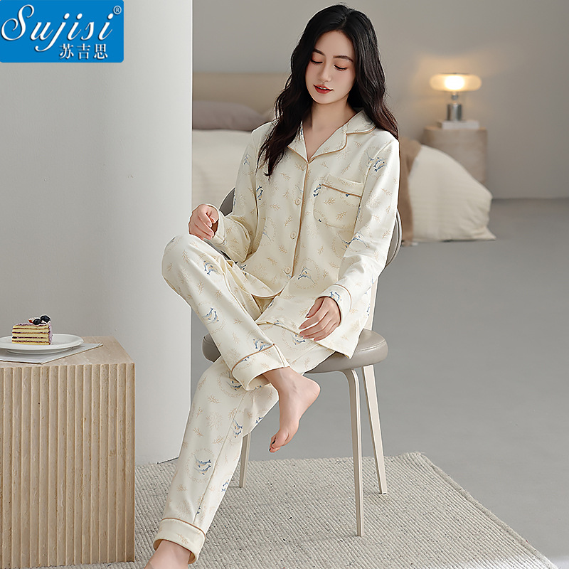 蘇吉思純綿パジャマ家庭服セット女性綿長袖長ズボン2023年春夏薄手卸売り