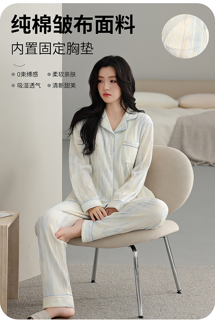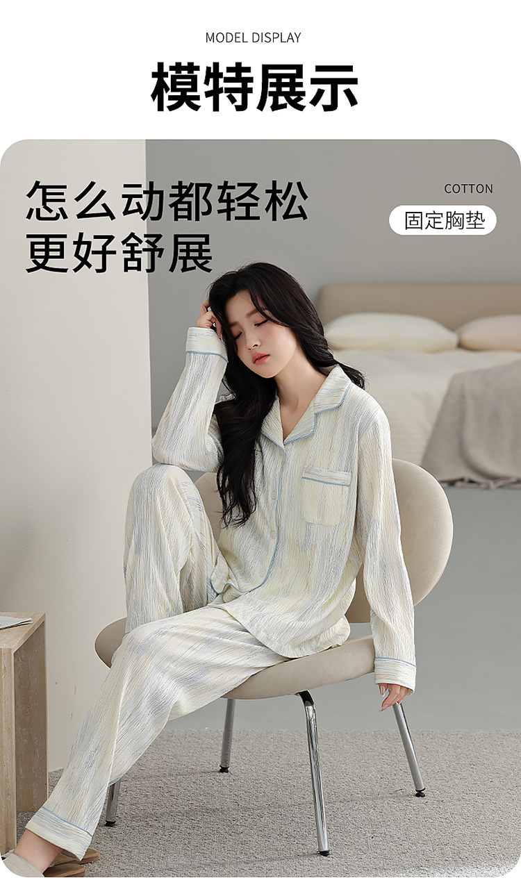 純綿のパジャマの女性は秋に純綿の長袖を着ることができます。