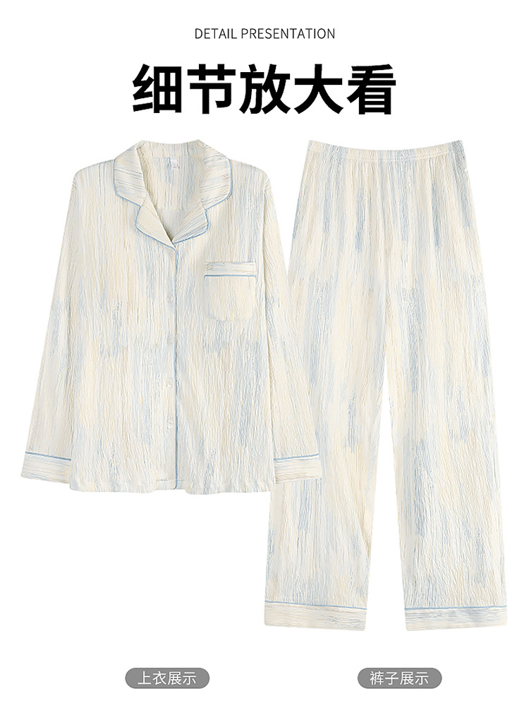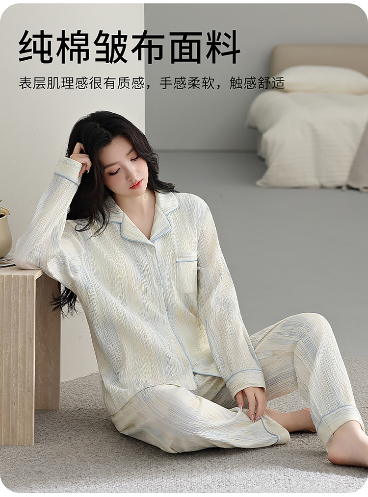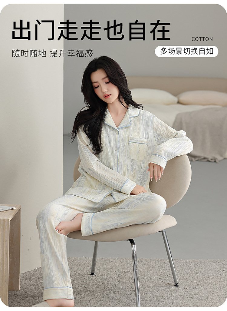 春秋季新款睡衣女纯棉翻领开衫长袖长裤宽松可外穿家居服套装