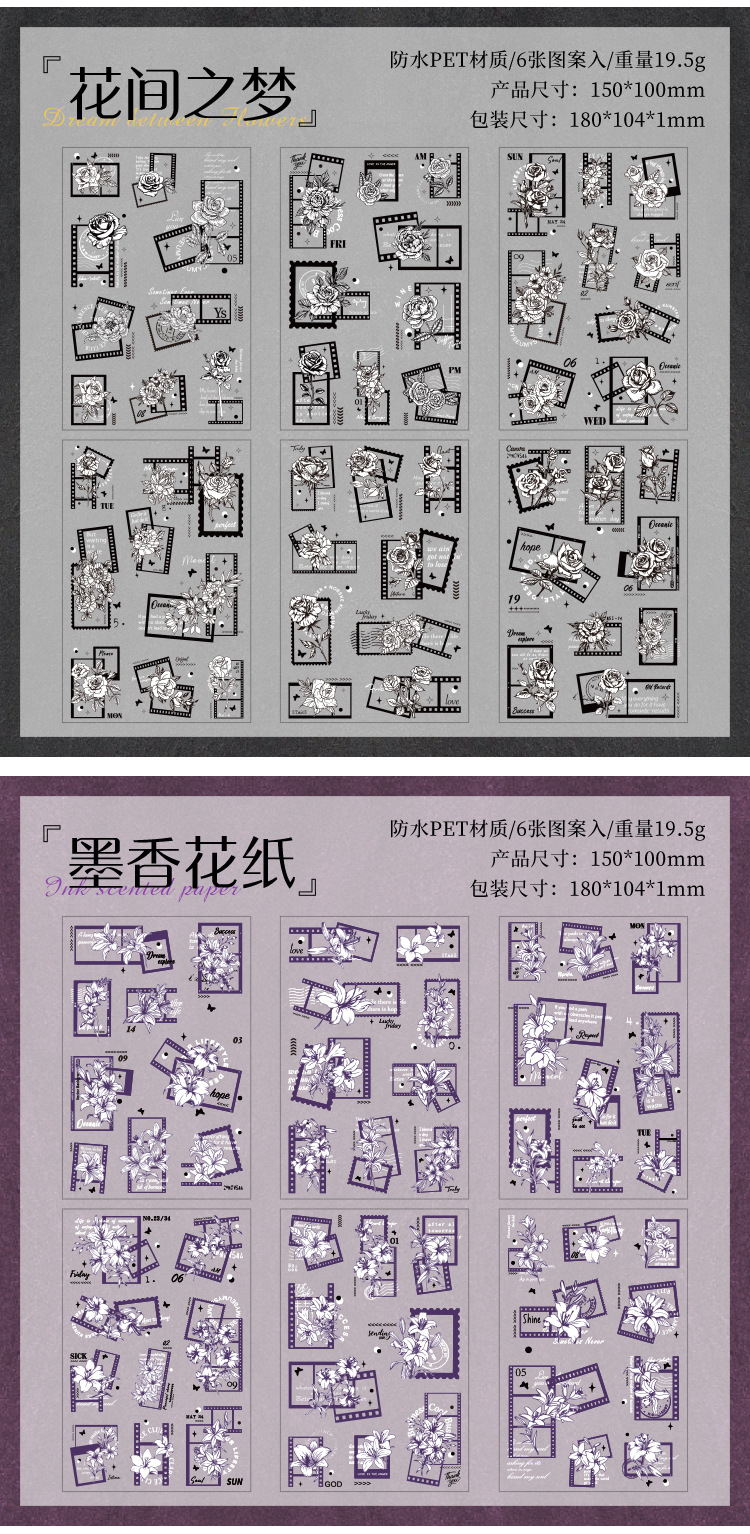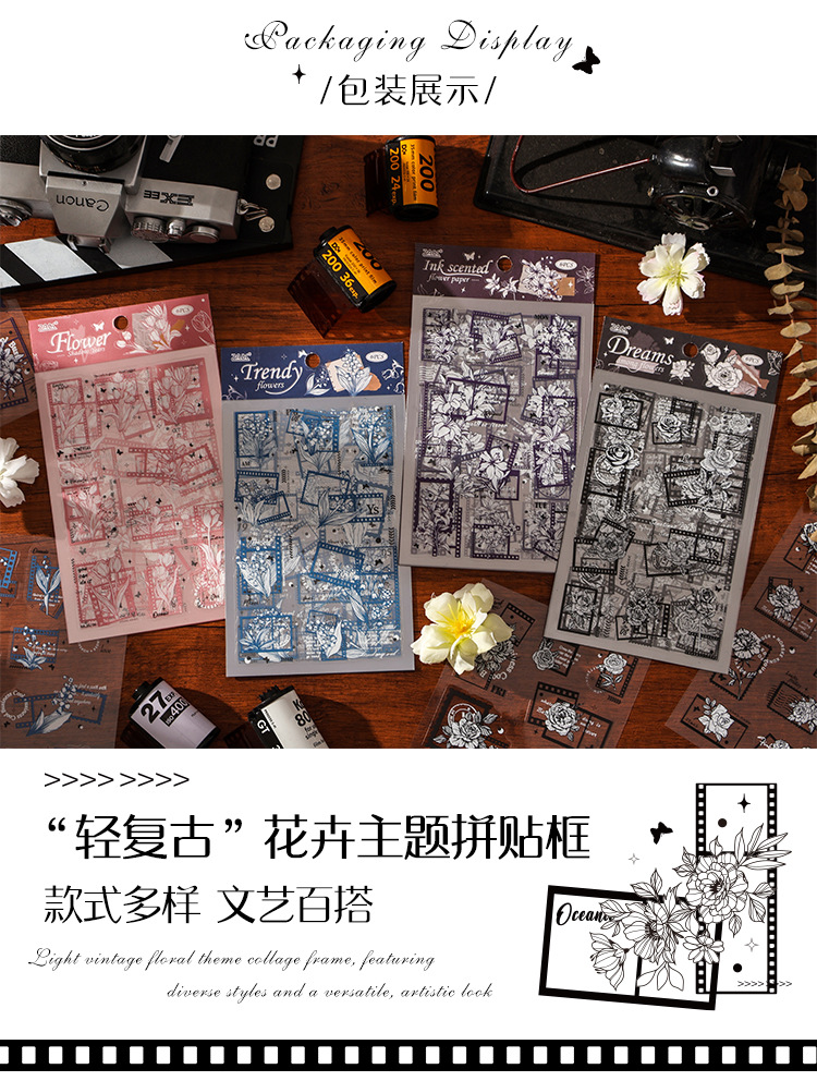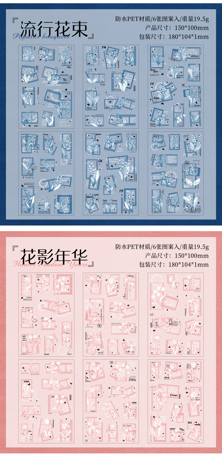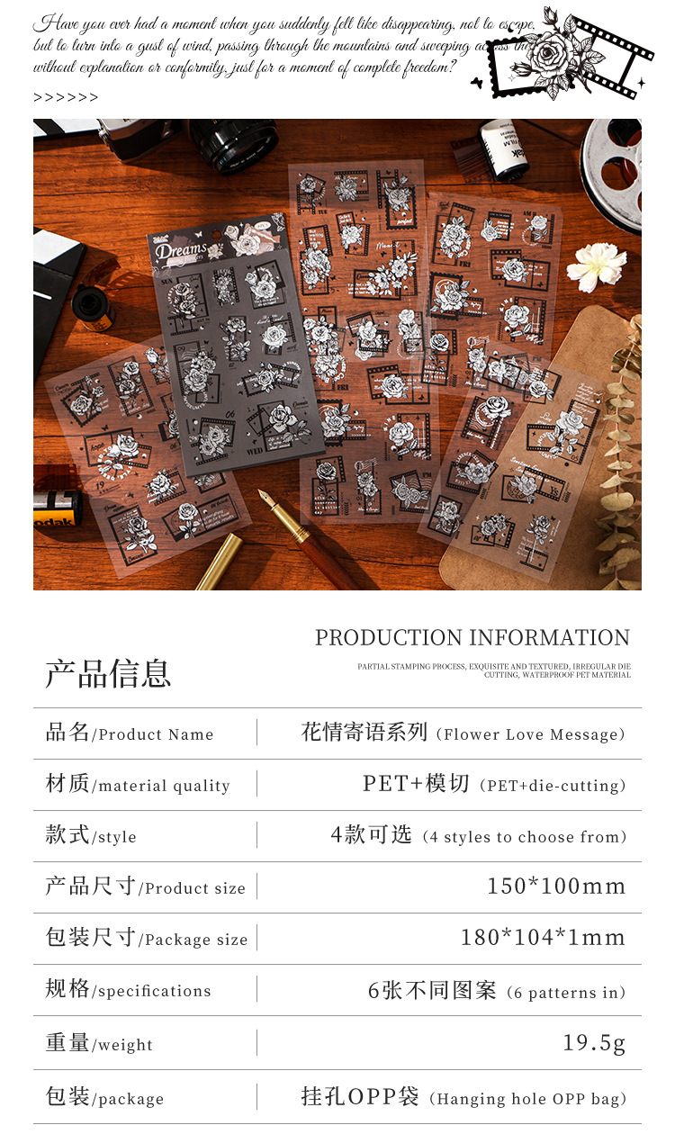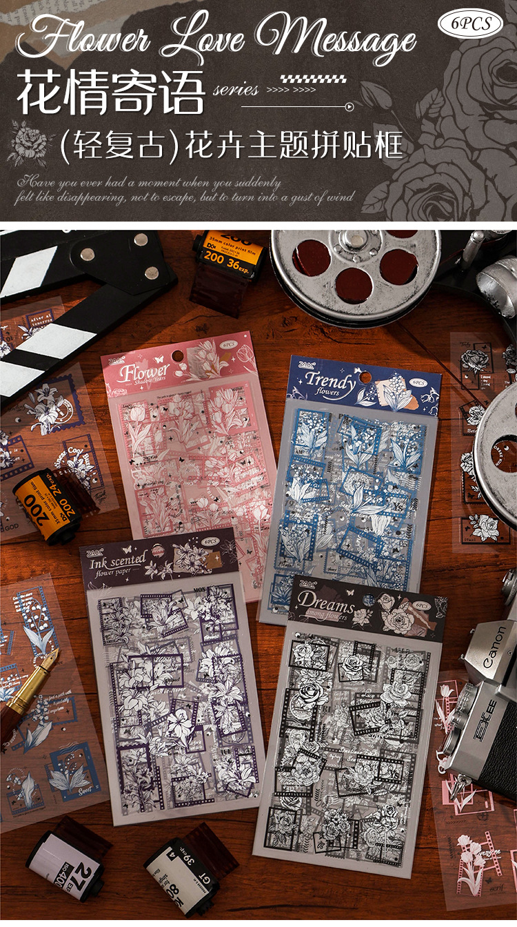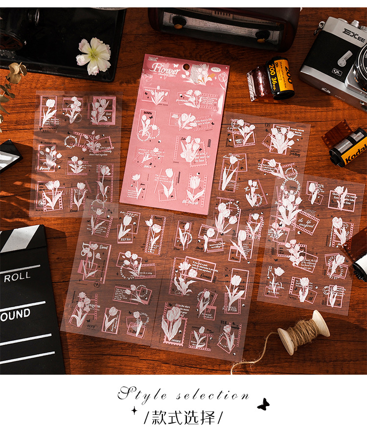 花のメッセージ透明防水ペットステッカー diy ハンドブック日記ステッカークロスボーダーレトロスタンプ花ステッカー