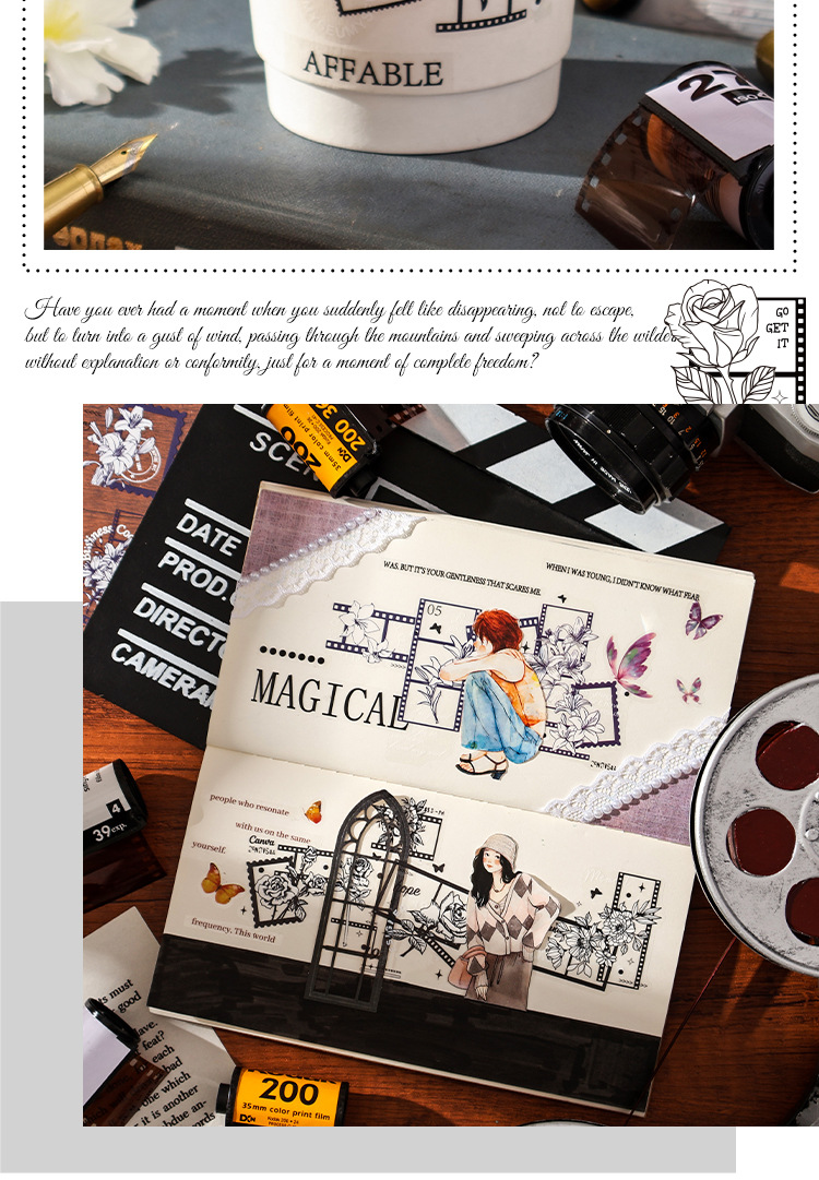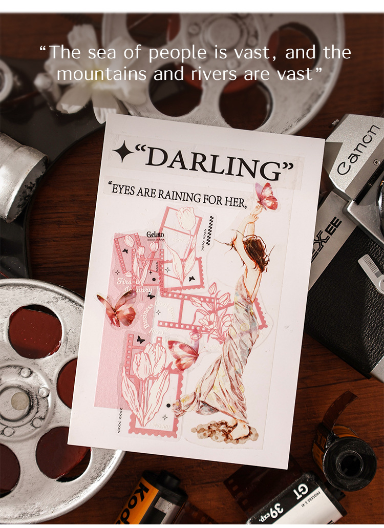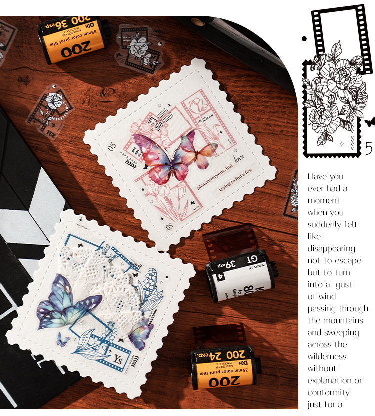 曼妙蝶影透明防水pet贴纸diy手账日记贴画跨境复古蝴蝶装饰贴画
