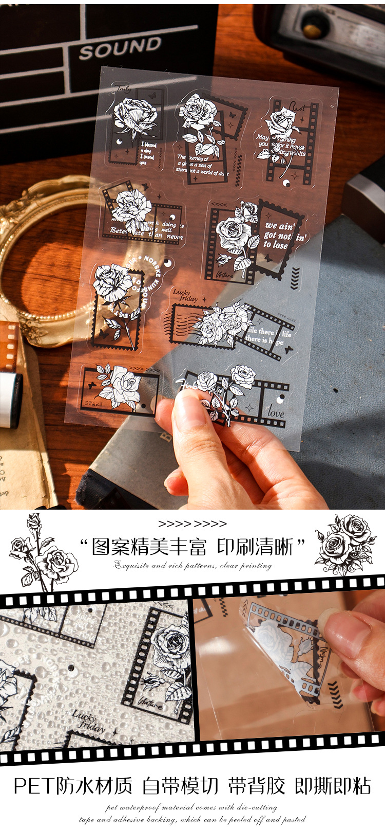 悦然軽語透明防水petシールdiy手帳日記貼り絵クロスボーダー復古英語素材貼り絵