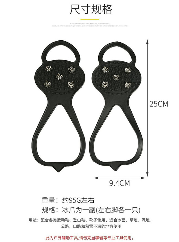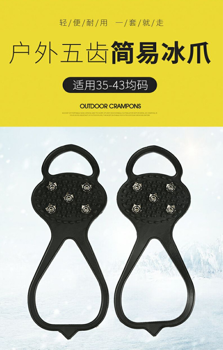 屋外滑り止め5歯シリコンアイゼン、雪の国、雪、男性、女性、高齢者向けのユニバーサル氷面軽量スノーグリップシューズ、保護用