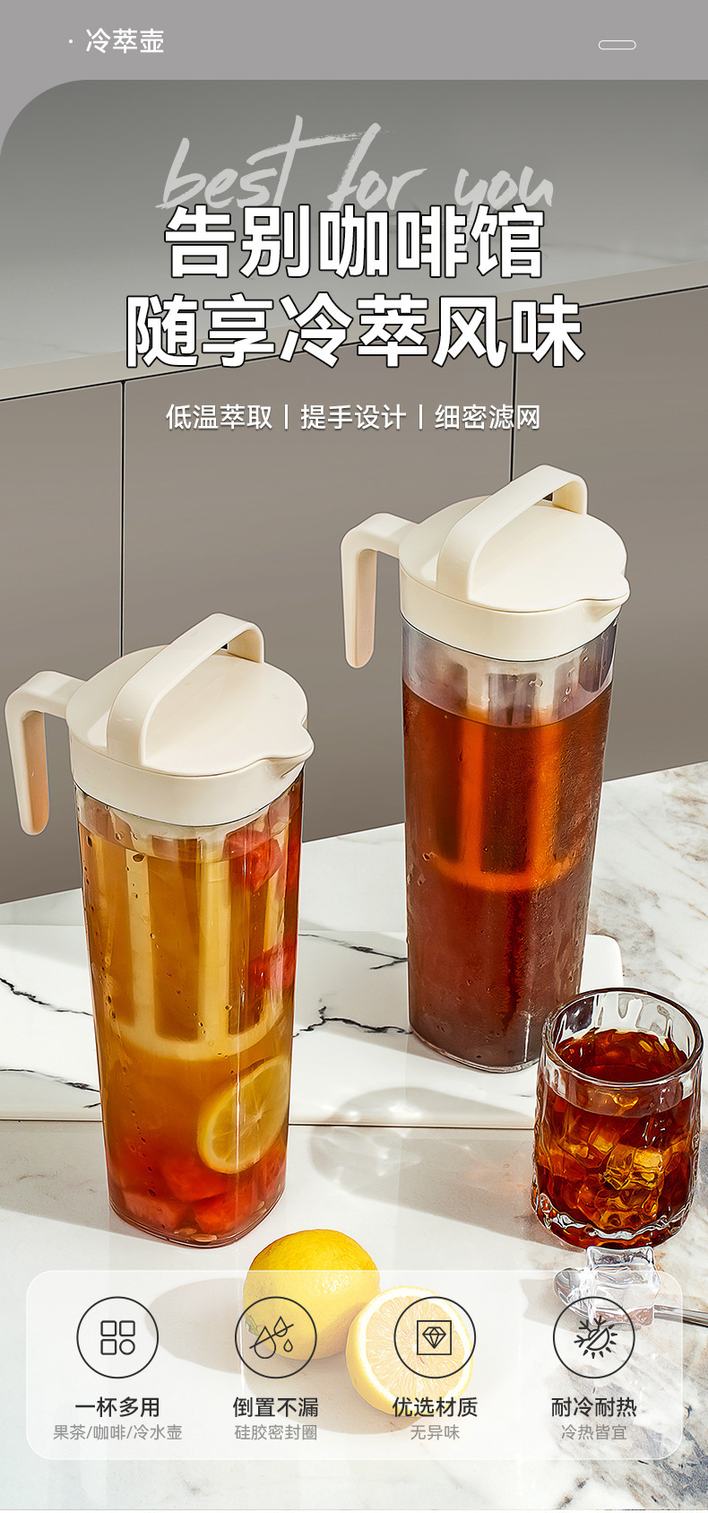 冰箱冷水壶咖啡冷萃壶水果茶密封耐高温冷泡冰滴水杯凉水壶大容量
