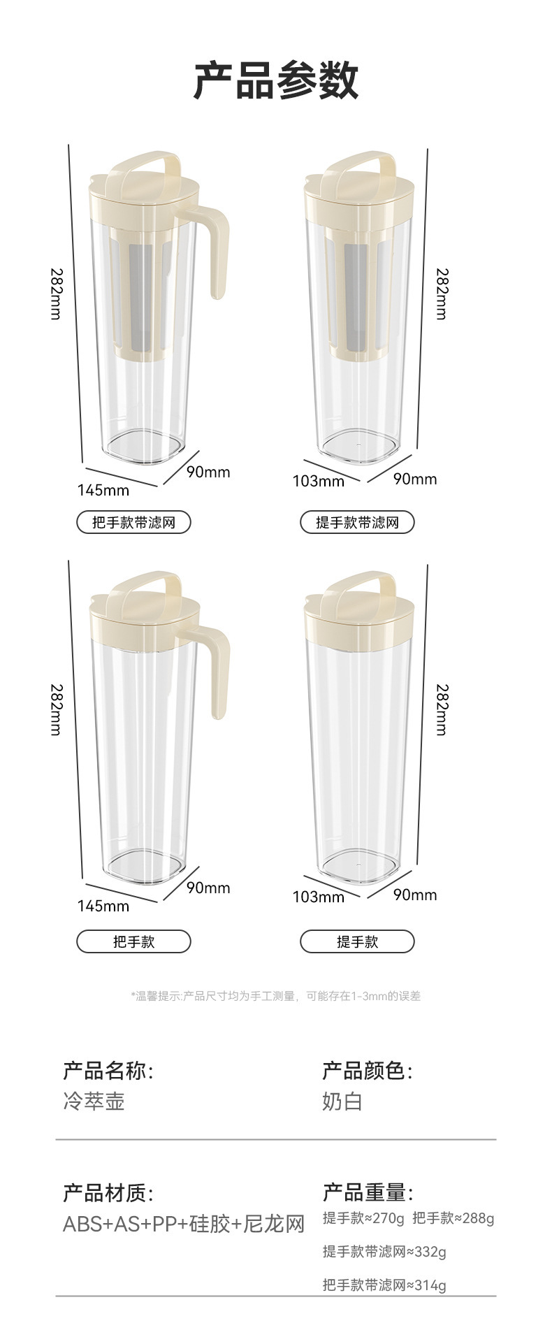 颜色 冷水壶(手提款),冷水壶(带手柄),冷萃壶(手提款)