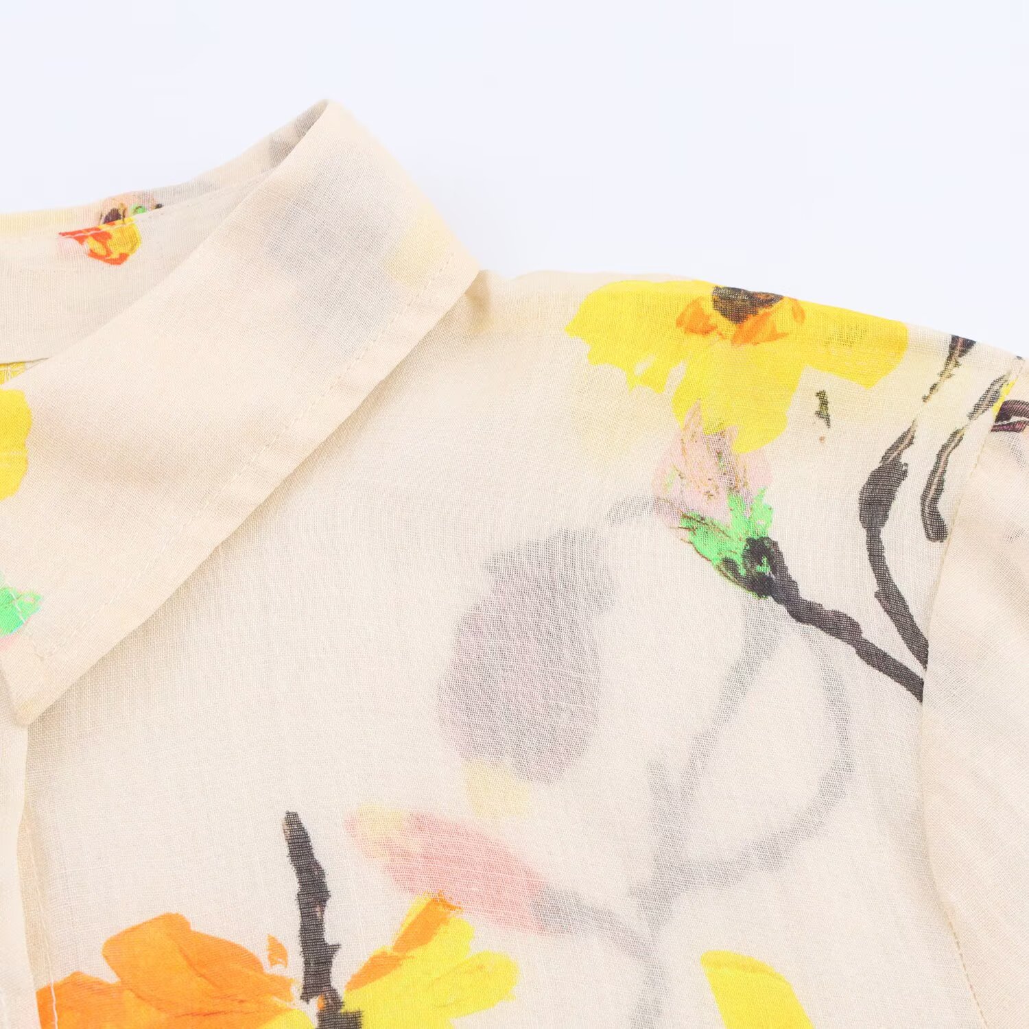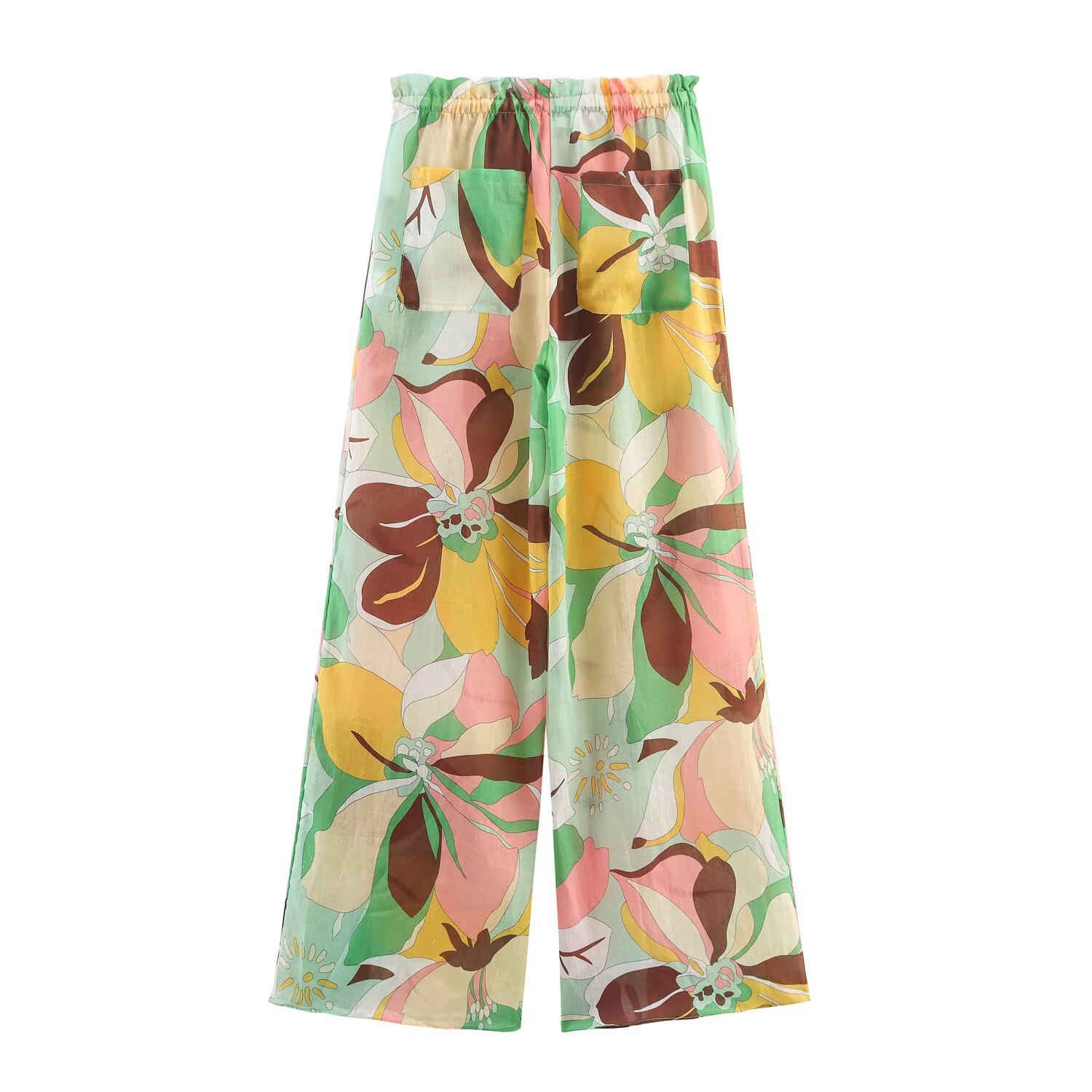 ヨーロッパとアメリカのクロスボーダー婦人服卸売女性のリネンフラワー長袖シャツハイウエストレースアップパンツカジュアルスーツ