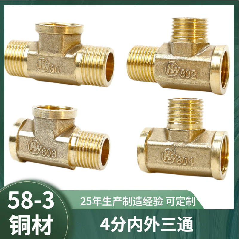 メーカー直販精品58-3銅材質4分1/2DN15銅三方黄銅継手水暖金物