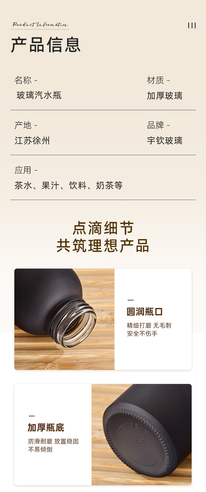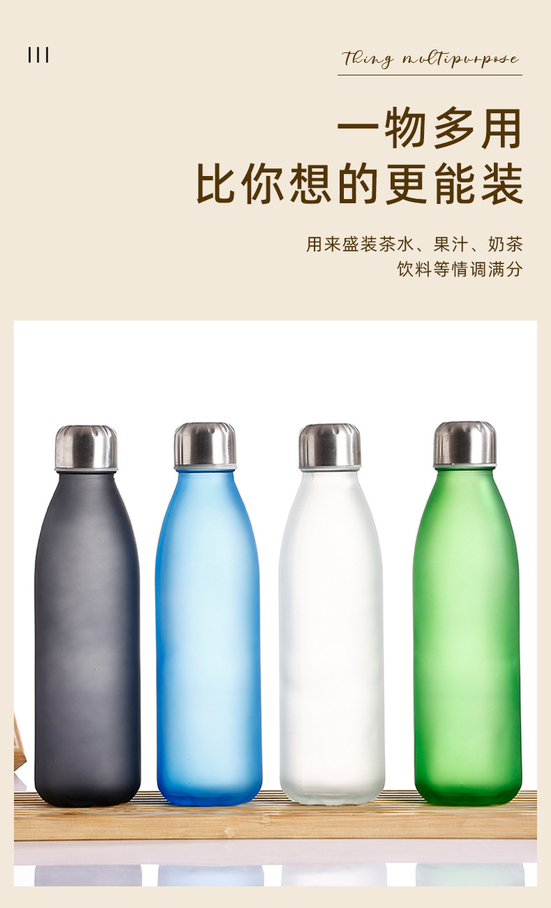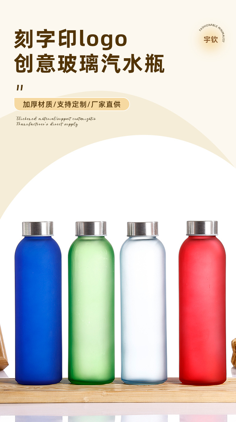 新款彩色玻璃杯创意汽水瓶便携带提绳运动水杯礼品刻字印logo定制