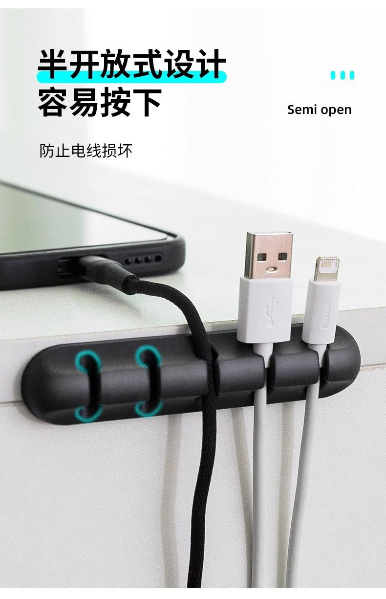 数据线理线器家用办公桌面充电线固定集线器无痕车载充电线整理