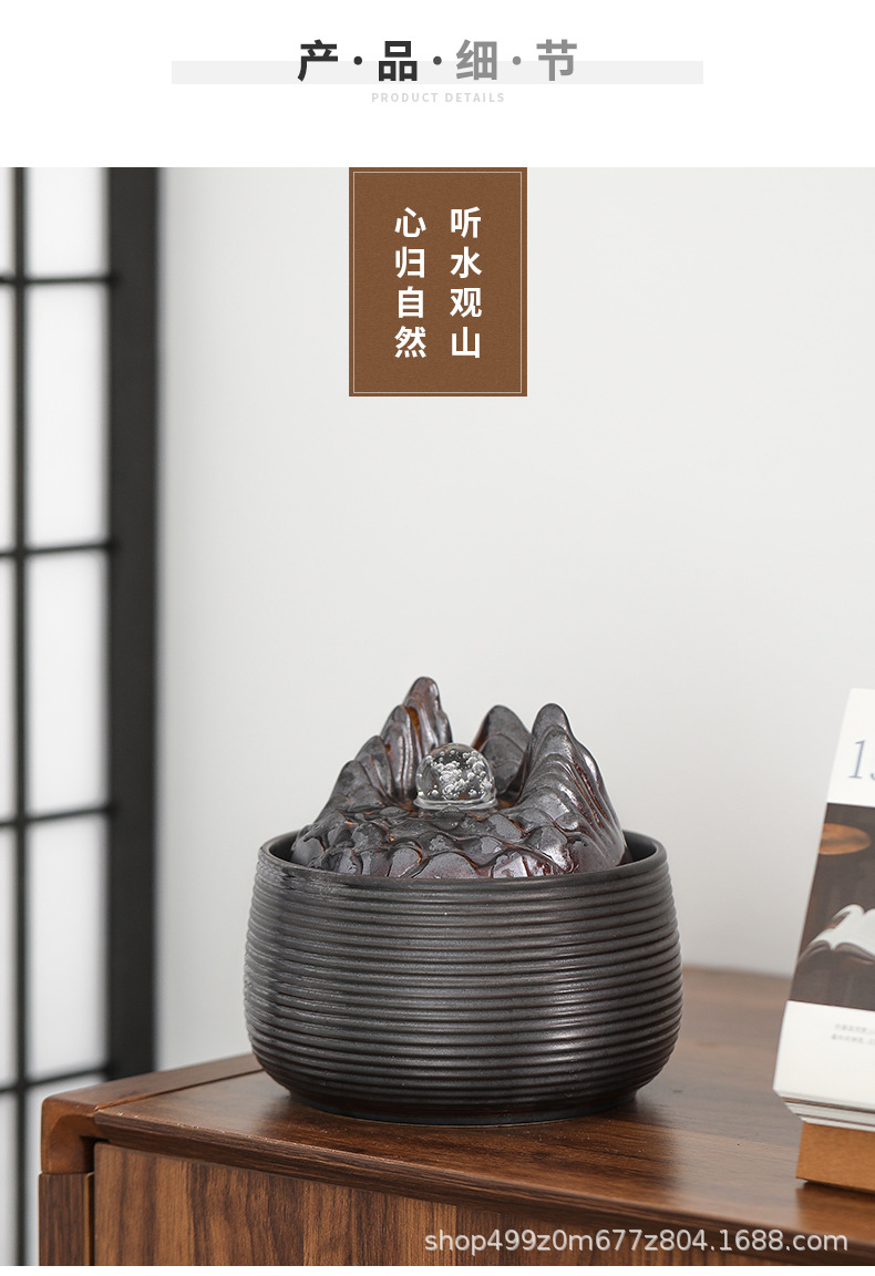 自动循环流水摆件中式客厅电视柜桌面小型加湿器公司前台创意造景