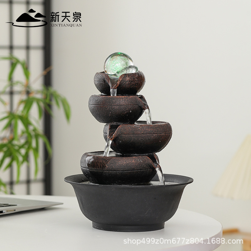 新天泉招財流水置物循環水オフィスリビングデスクトップ置物フロント招財装飾移転礼