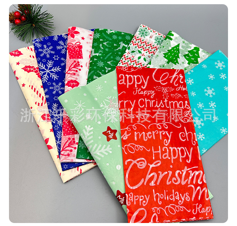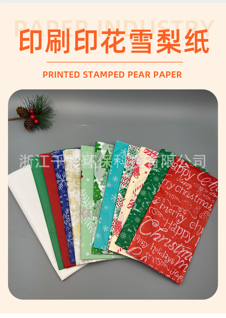 圣诞雪梨纸14*25in加工折叠贴标印刷薄页纸节日装饰布置包装纸