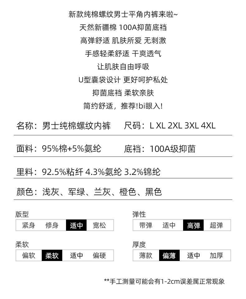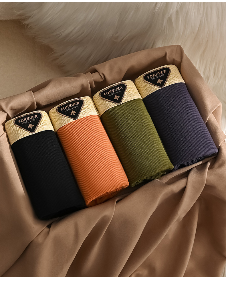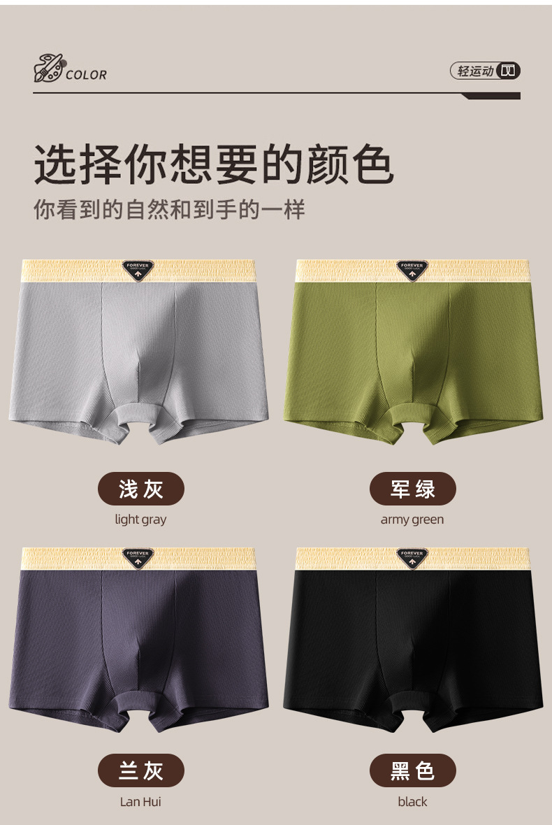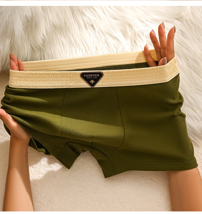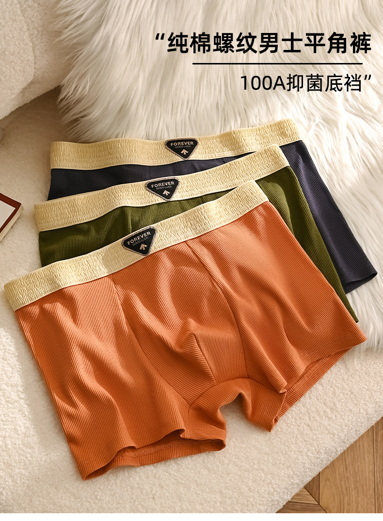 美拉德系棉质新款男士内裤纯色批发中腰大码透气男士平角裤可代发