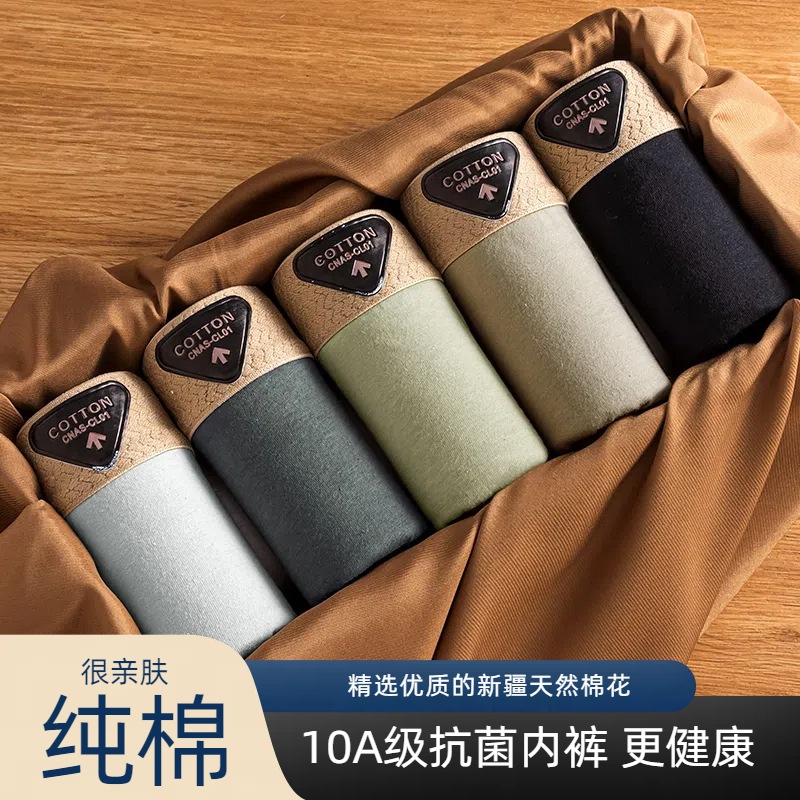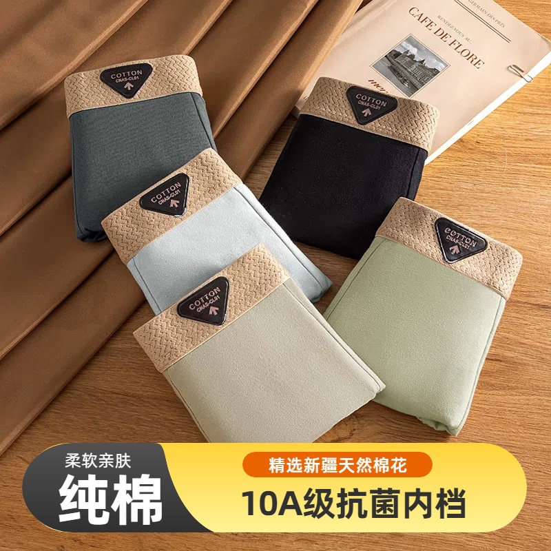 男士内裤纯棉透气平角裤潮流轻奢高级感10A抗菌裆中腰青年四角裤