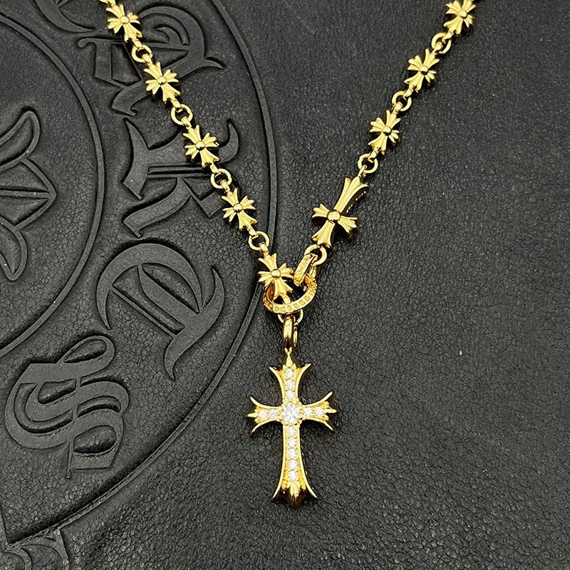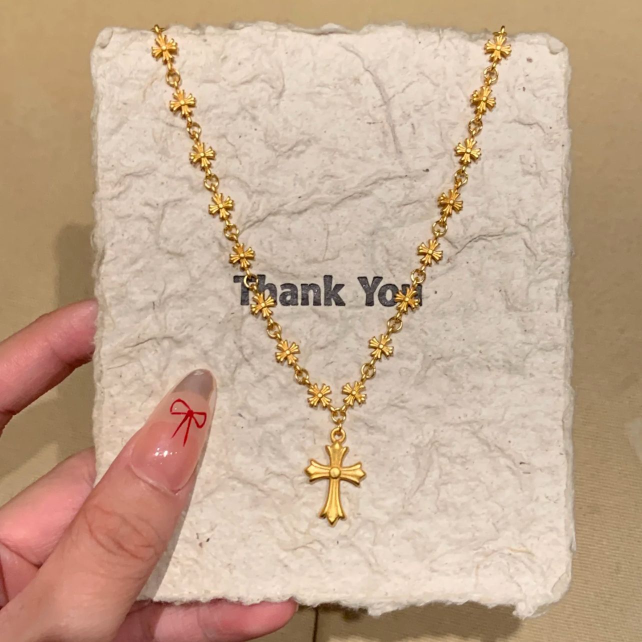 ch克罗伈复古镂空吊牌十字架吊坠项链潮流个性男女同款百搭毛衣链