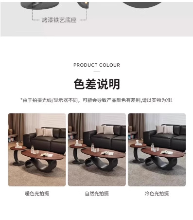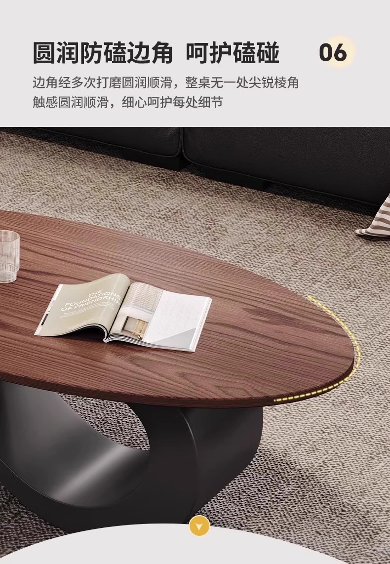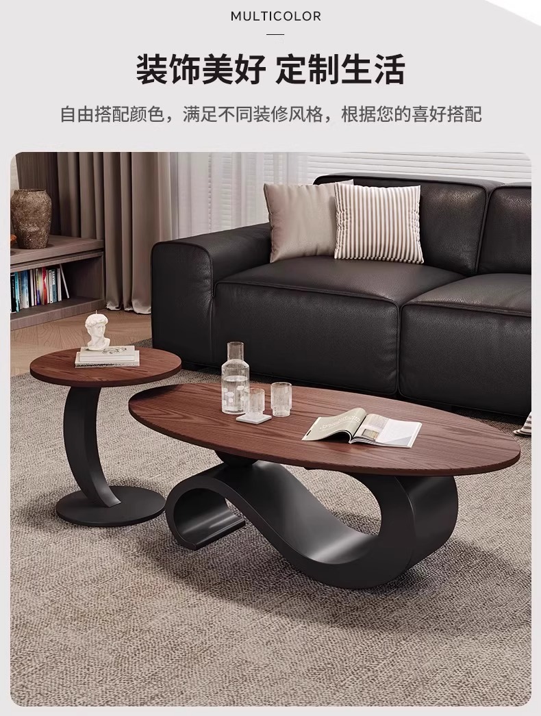リビングルーム中国風オーバルイタリア中世スタイルウォールナットコーヒーテーブルライト高級ホームモダンシンプルハイエンド