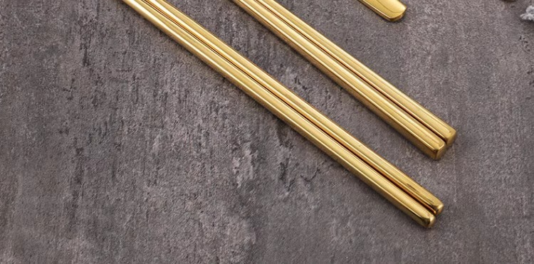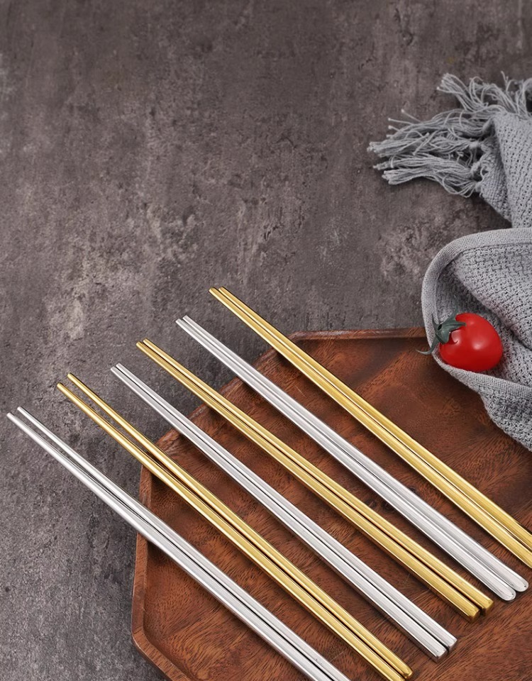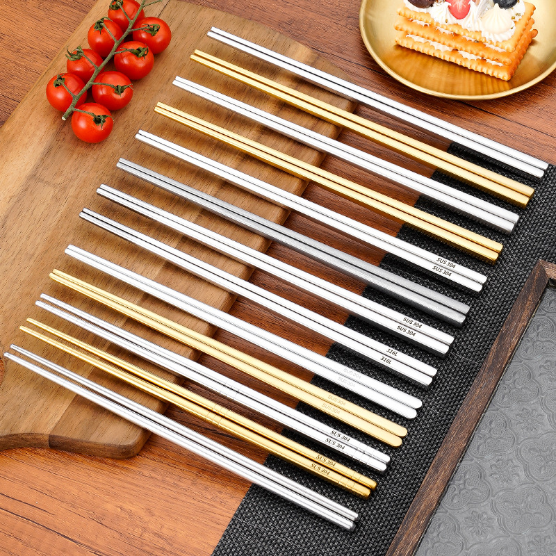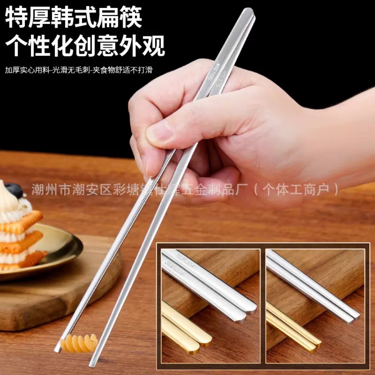韓国 304 ステンレス鋼の箸家庭用滑り止め平箸ソリッドゴールデン箸スプーン正方形商業バーベキューレストラン食器