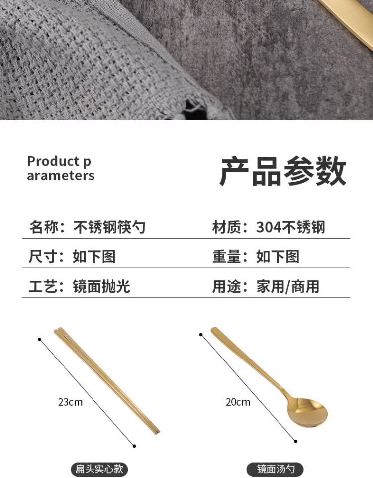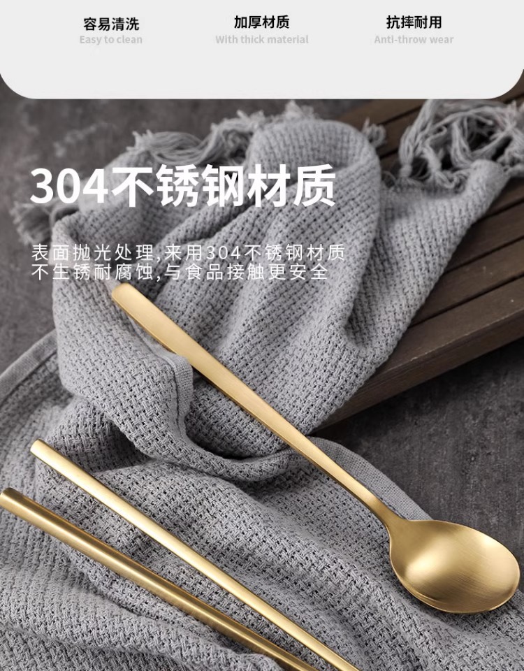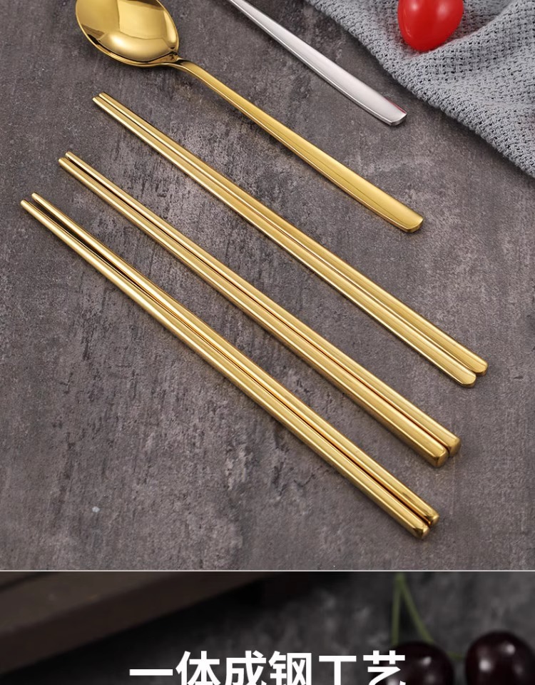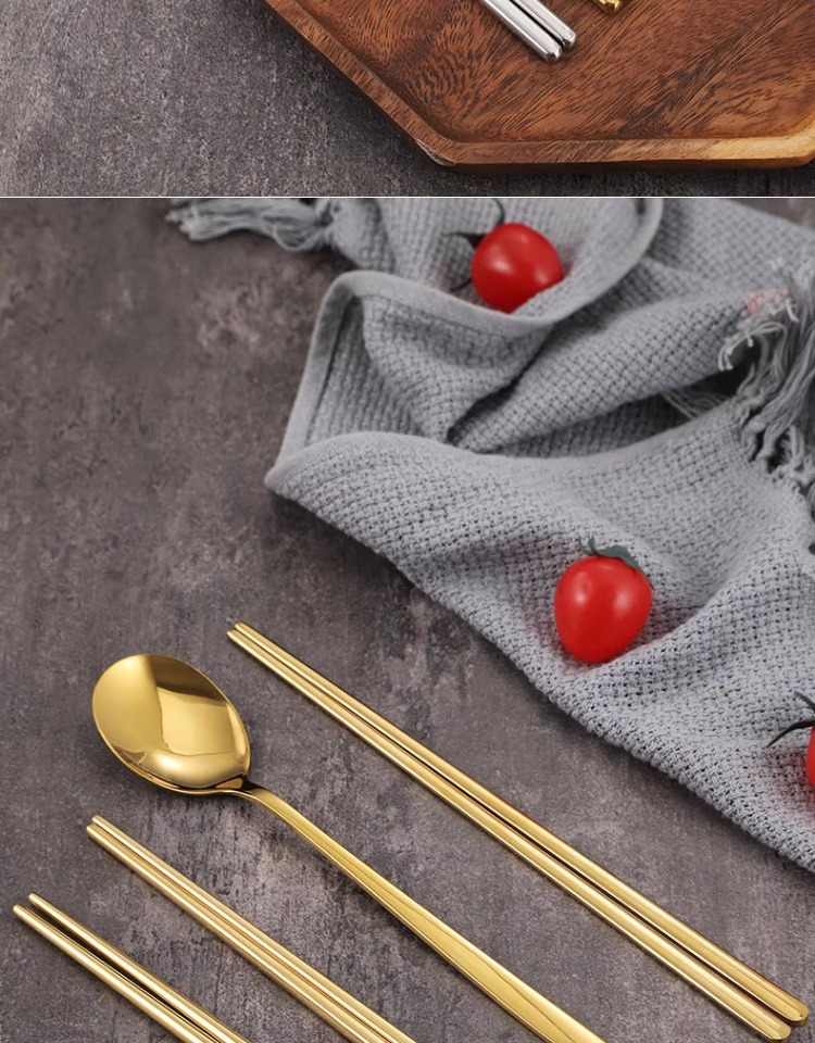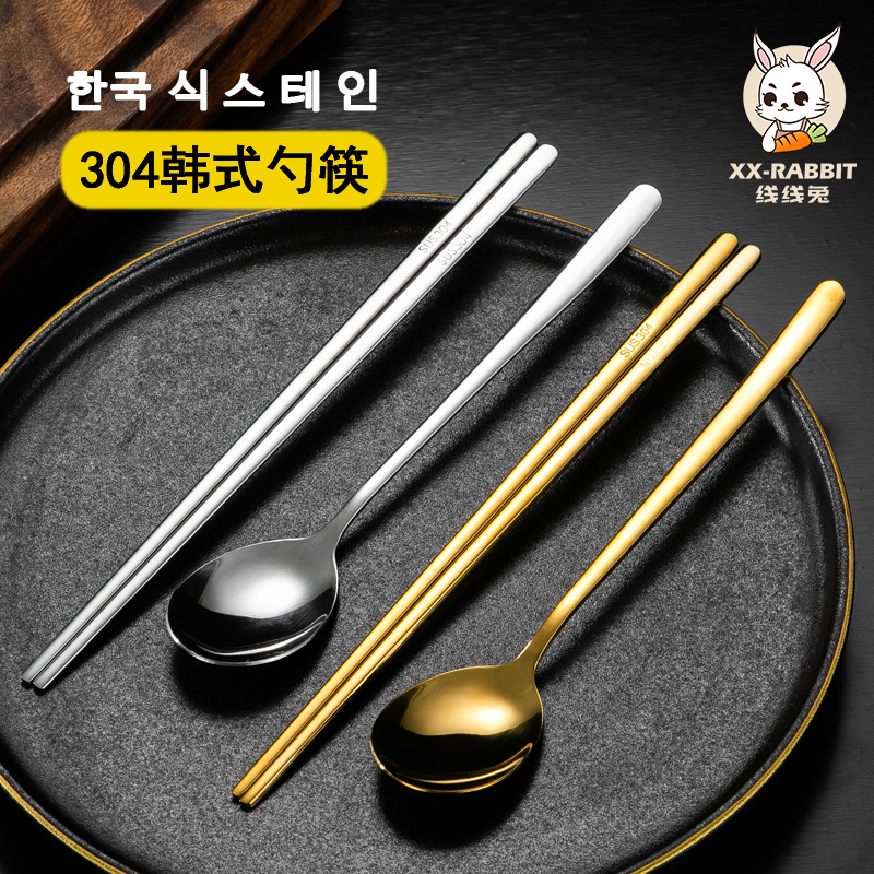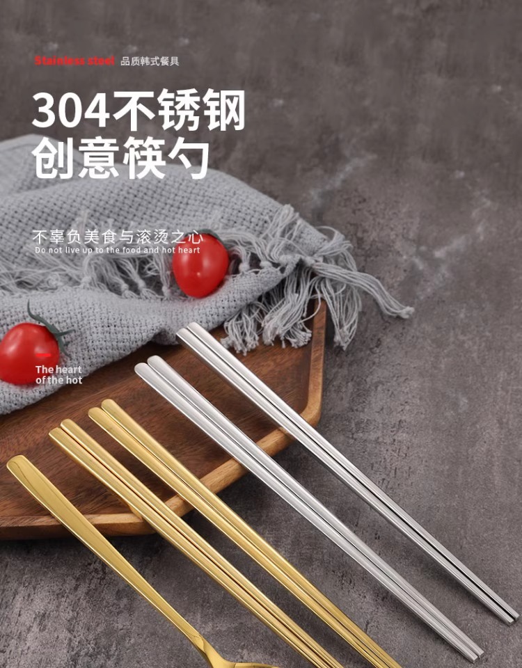 304ステンレス平箸韓国式箸中実日本料理箸焼肉店食器韓国金色スプーン箸