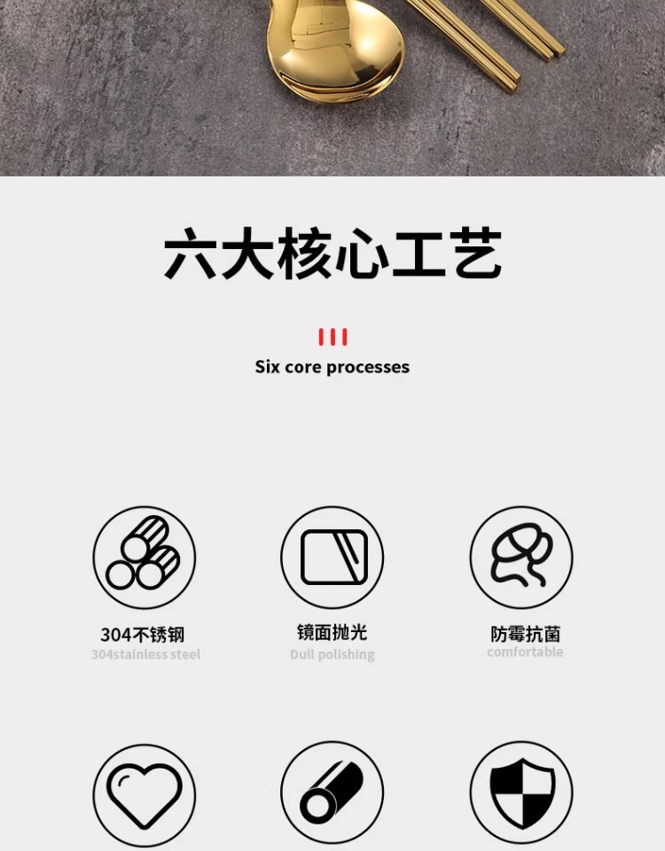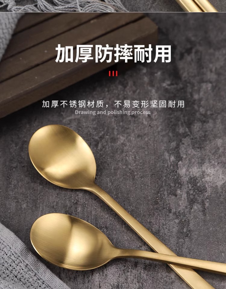 复古304不锈钢筷子做旧烤肉方形防滑筷勺商用餐厅勺子刀叉餐具