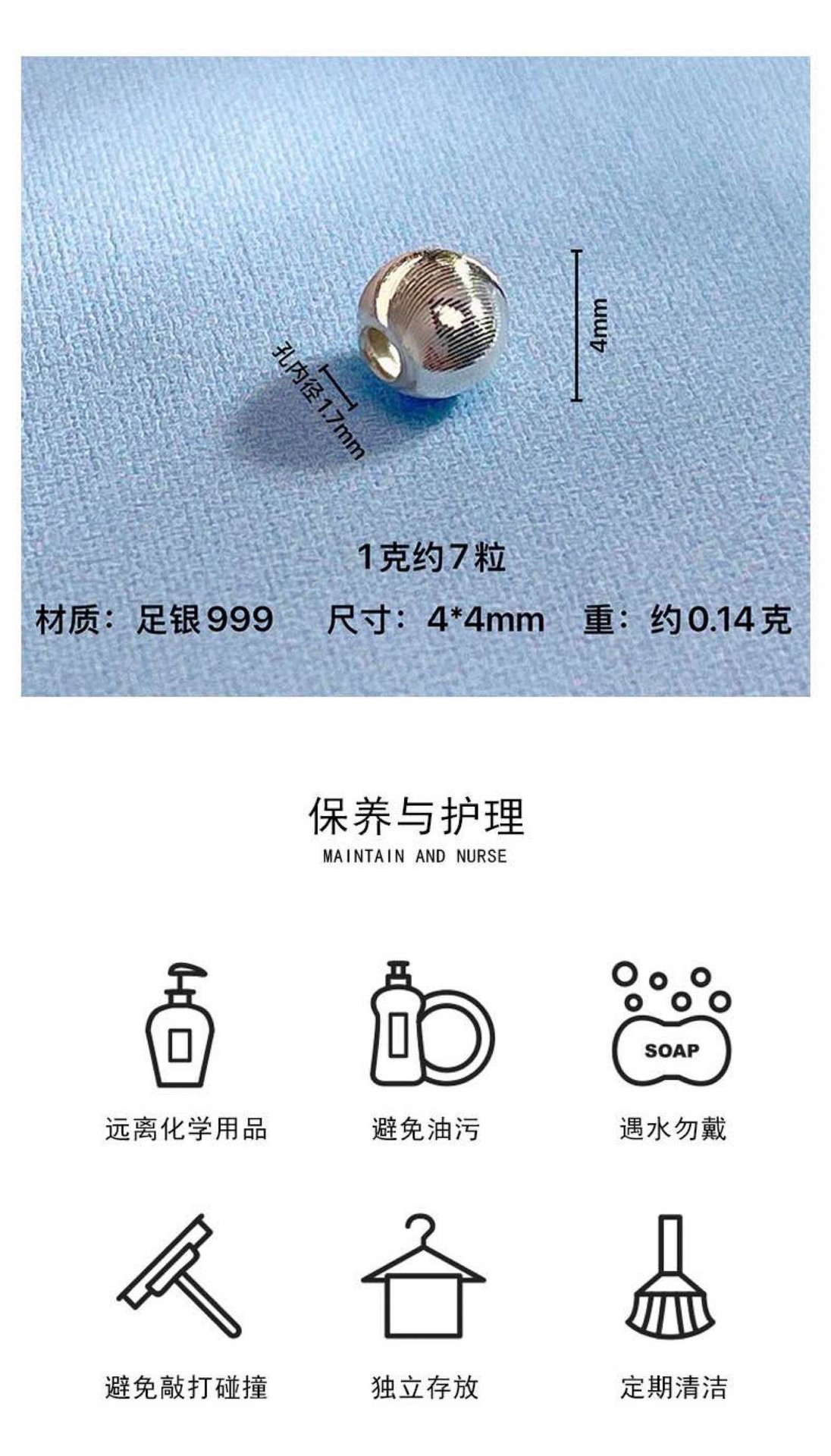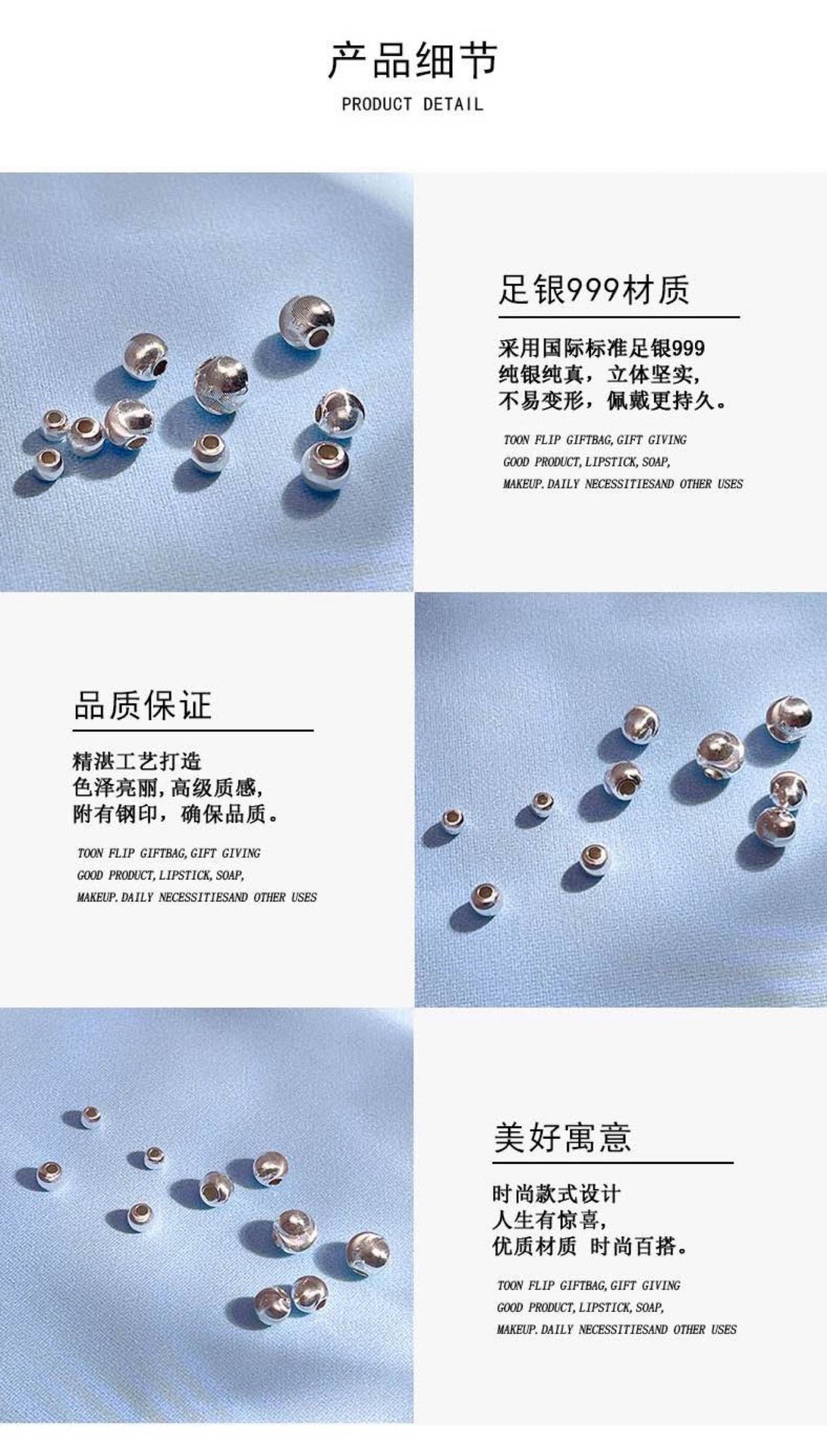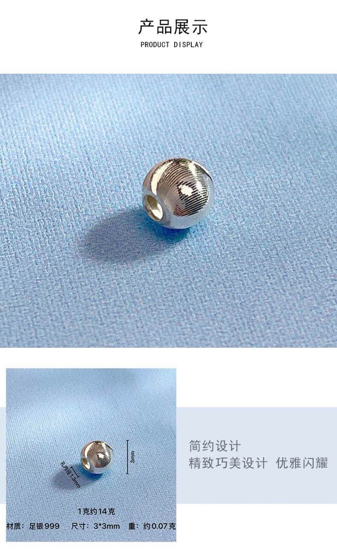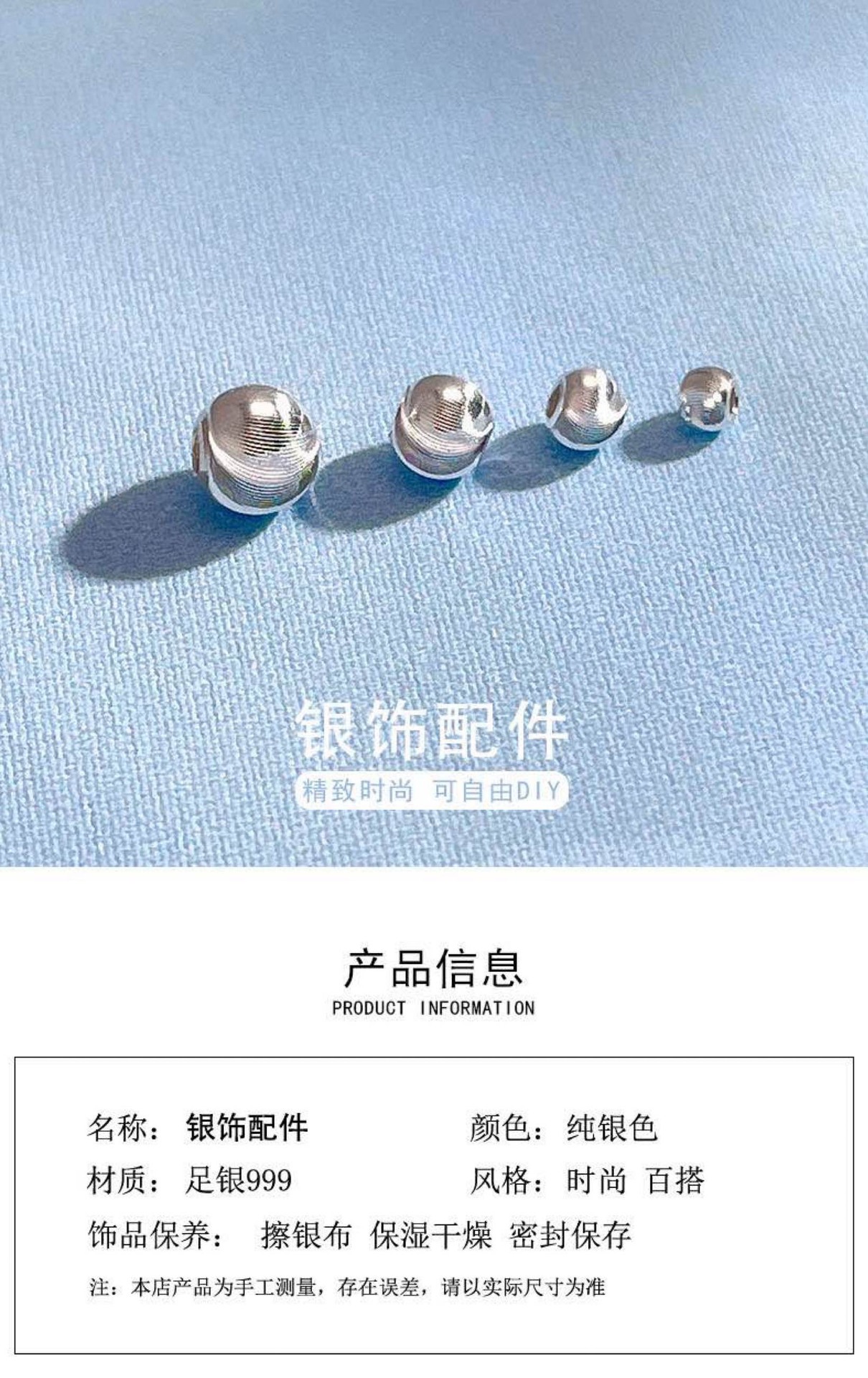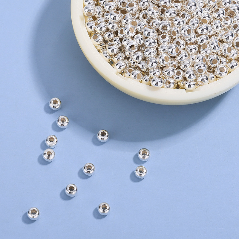 足银999隔珠算盘珠散珠银饰配件diy串珠手链耳环项链光面圆珠批发