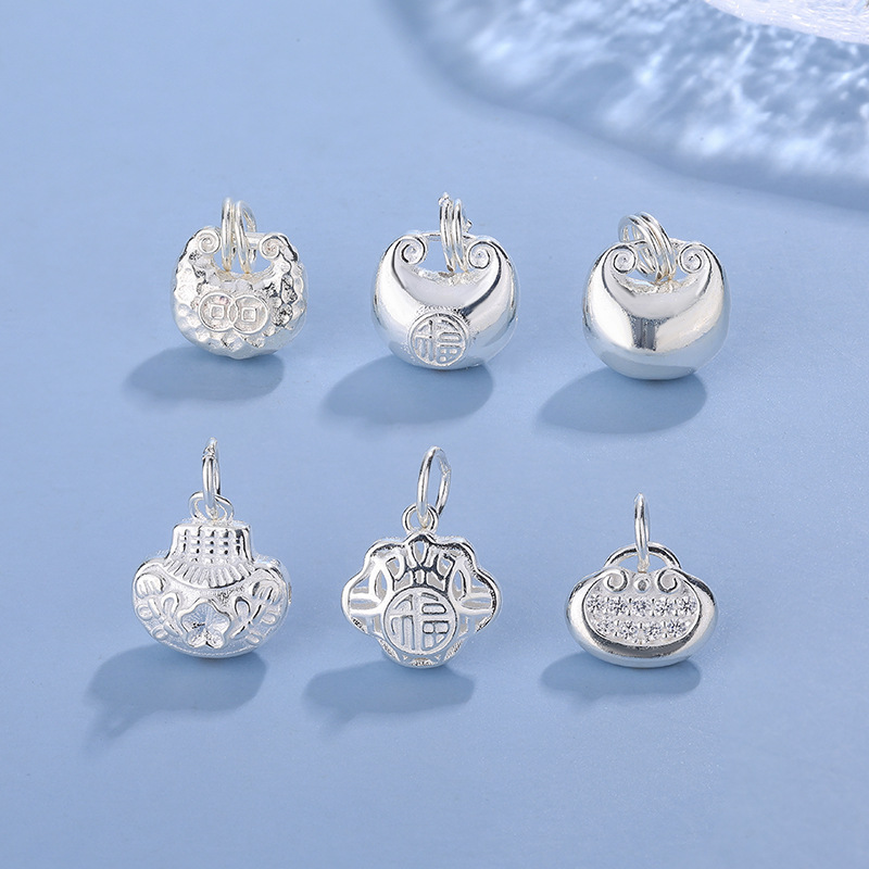 足银999铃铛花朵算盘葫芦生肖龙DIY红绳手链配件钥匙扣饰品配饰