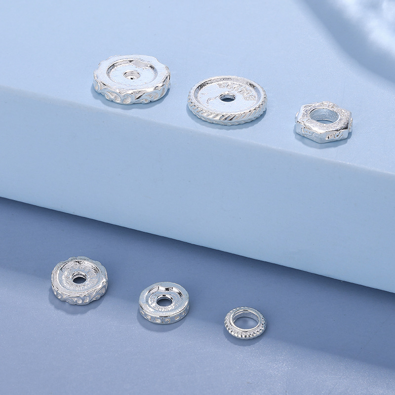 999 純銀 diy アクセサリー手作り無地シルバー 5-8 ミリメートルシルバースペーサーガスケット水の波紋ブレスレットスペーサービーズ卸売