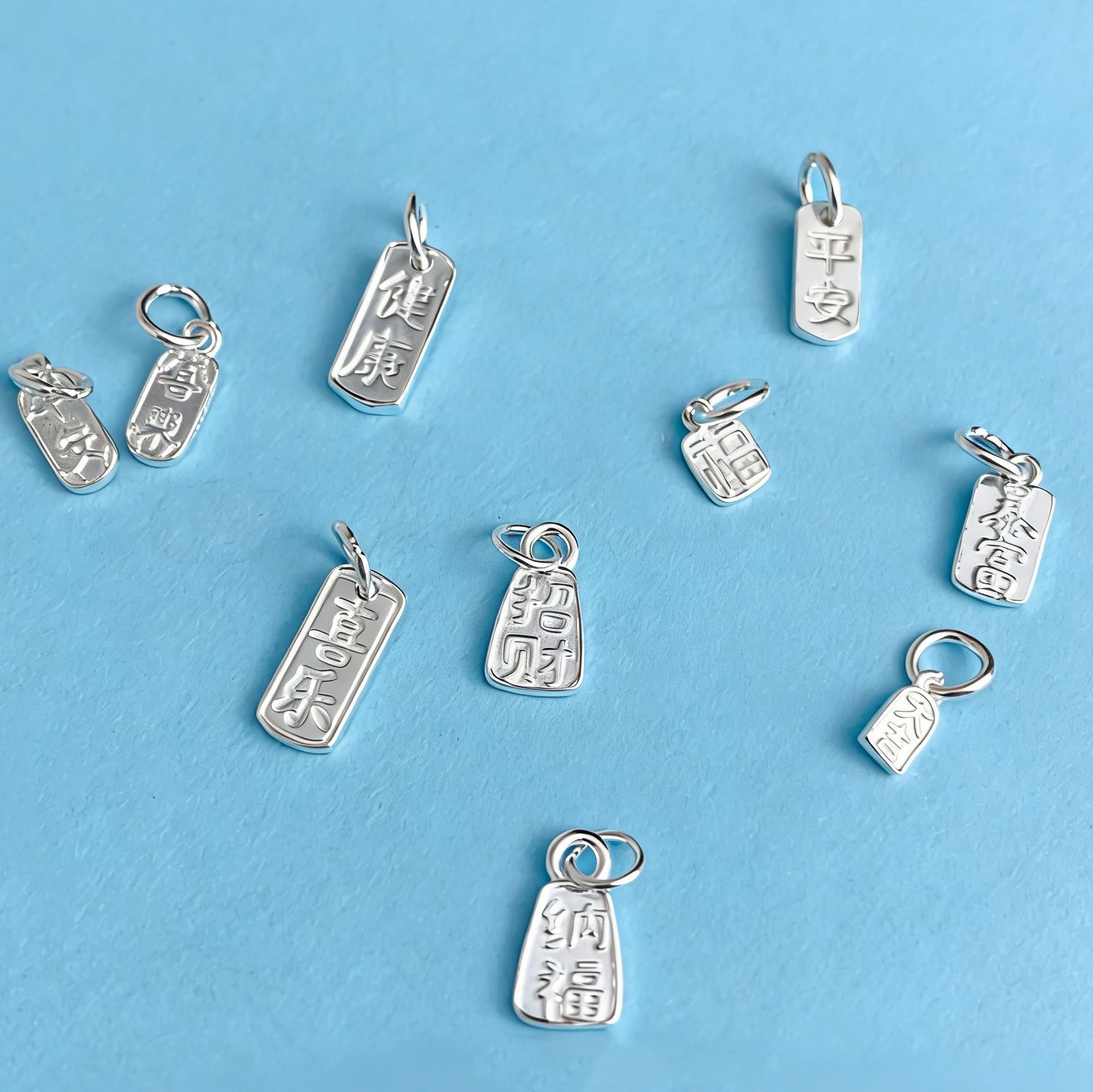 999足银配件银饰平安喜乐提溜DIY手串手链项链挂吊坠配饰饰品批发