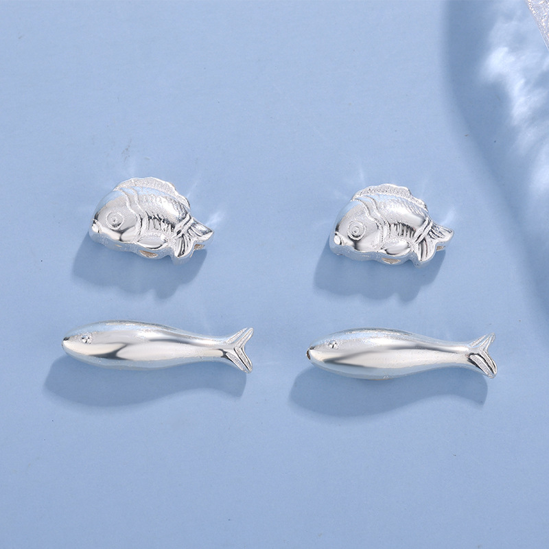 足银999莲花小鱼隔珠吊坠配件复古胖福三通配饰流苏DIY手工材料