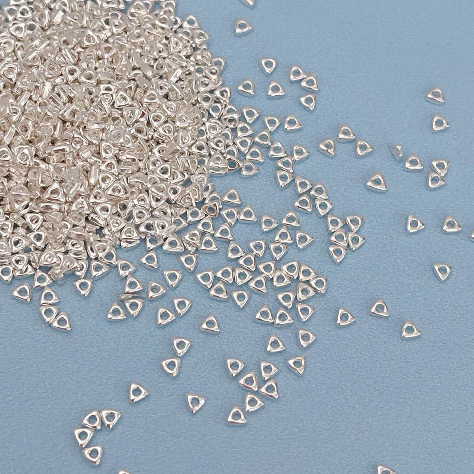 批发999碎银几两隔珠足银三角几何素银散珠DIY手链项链串珠配件