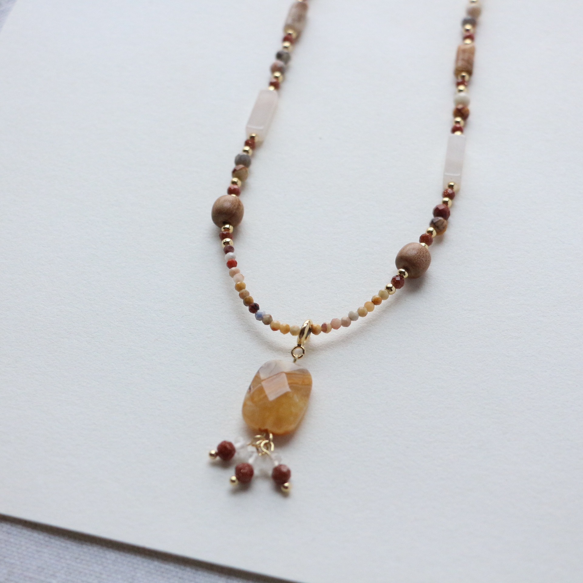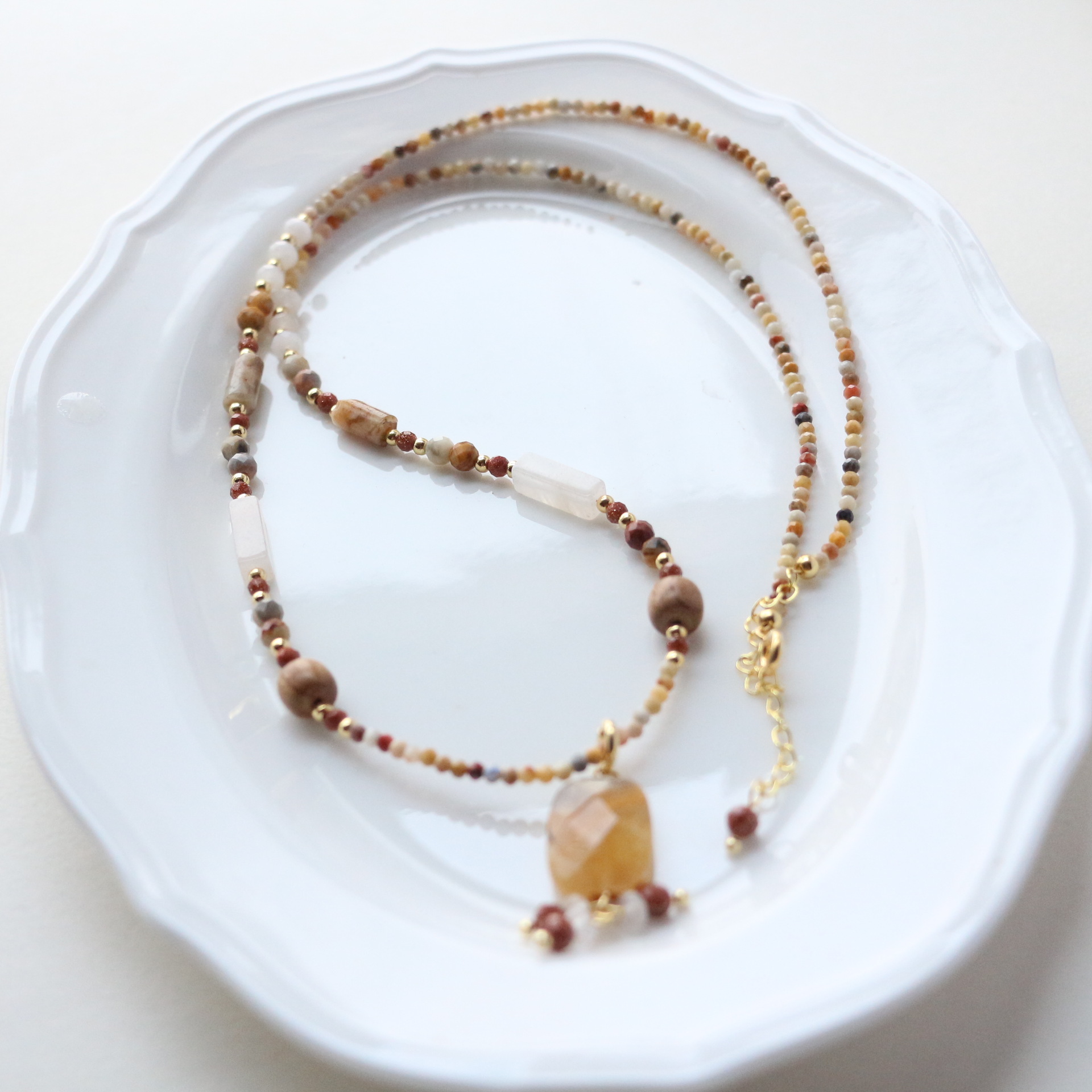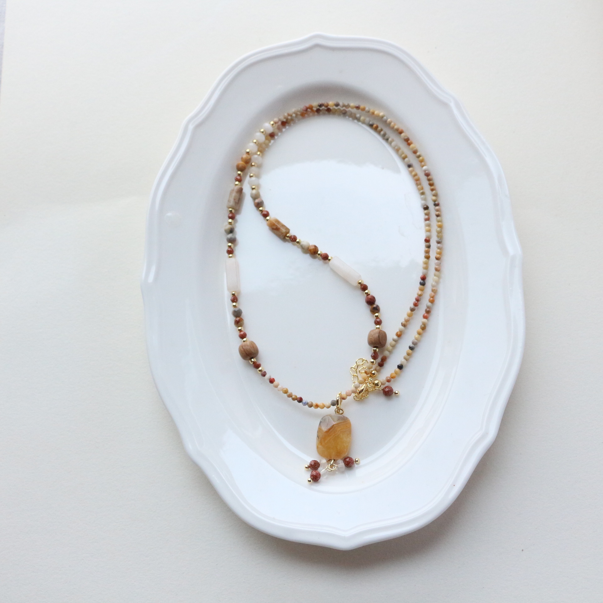 敦煌砂土色ロングネックレス天然石手作りビーズ創意ネックチェーン西域砂漠色