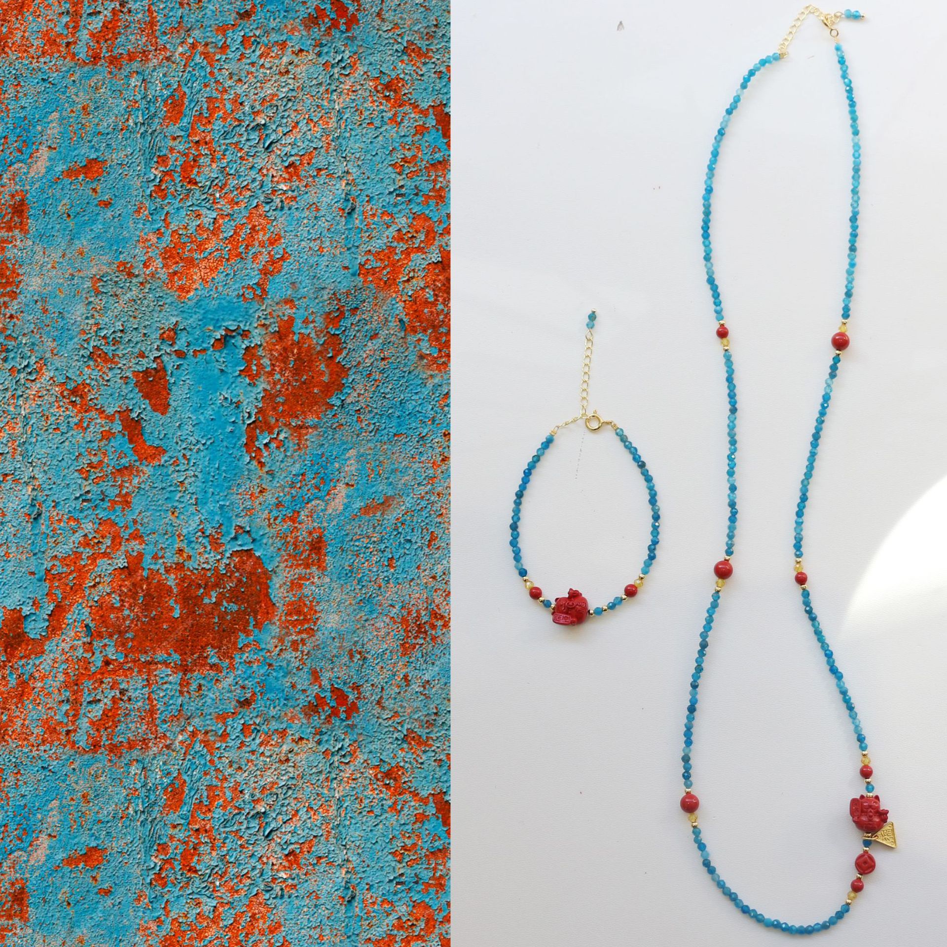 秋冬百合美ラード復古色ネックレス虎眼石ビーズブレスレット指輪紅書博主同金