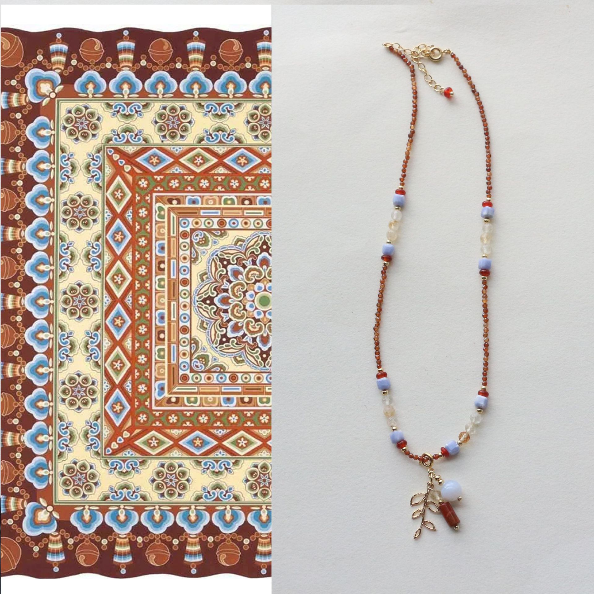 新中式国风项链长款沙漠色天然石项链吊坠可拆更换敦煌风长链