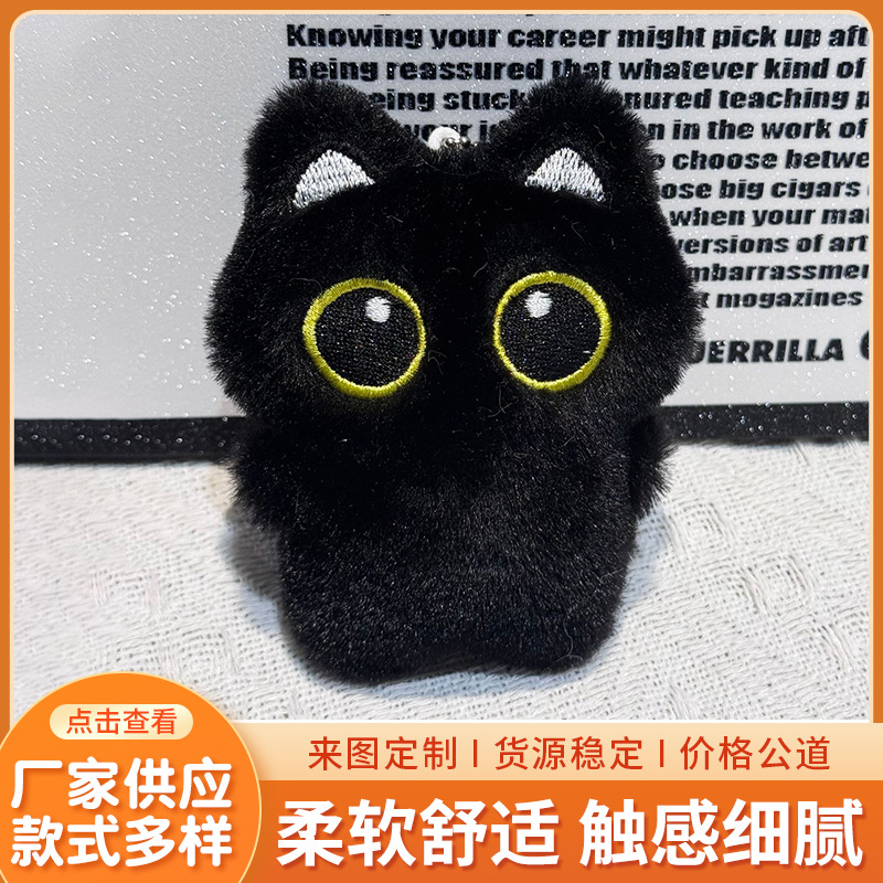 インターネット有名人の人気の大きな目の黒猫のきしむぬいぐるみペンダントかわいい黒猫のペンダント卸売