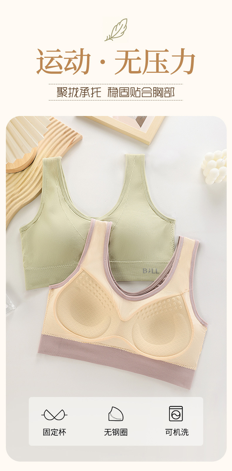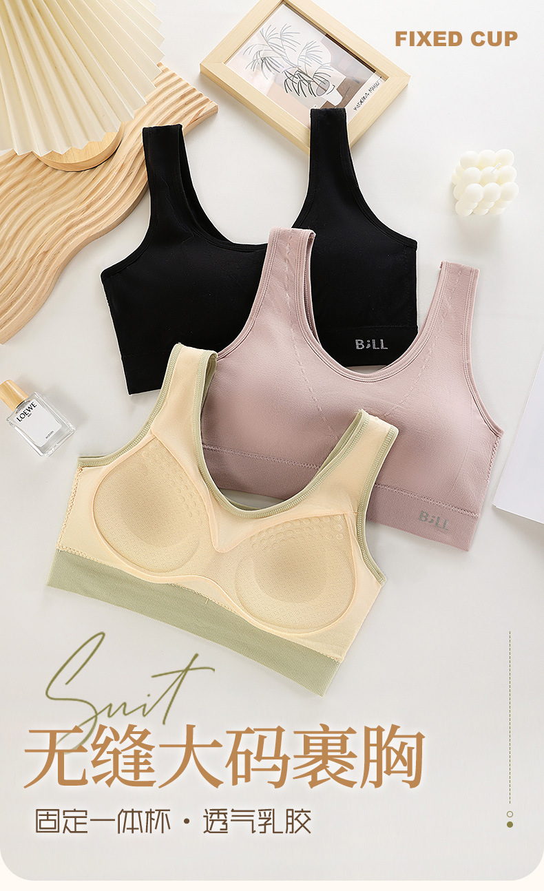 おしゃれな下着、耐衝撃性と美しい背中、ノンワイヤー、プラスファット、快適な胸の包み込み、固定ショルダーストラップ、カップ一体型、シームレスで多用途